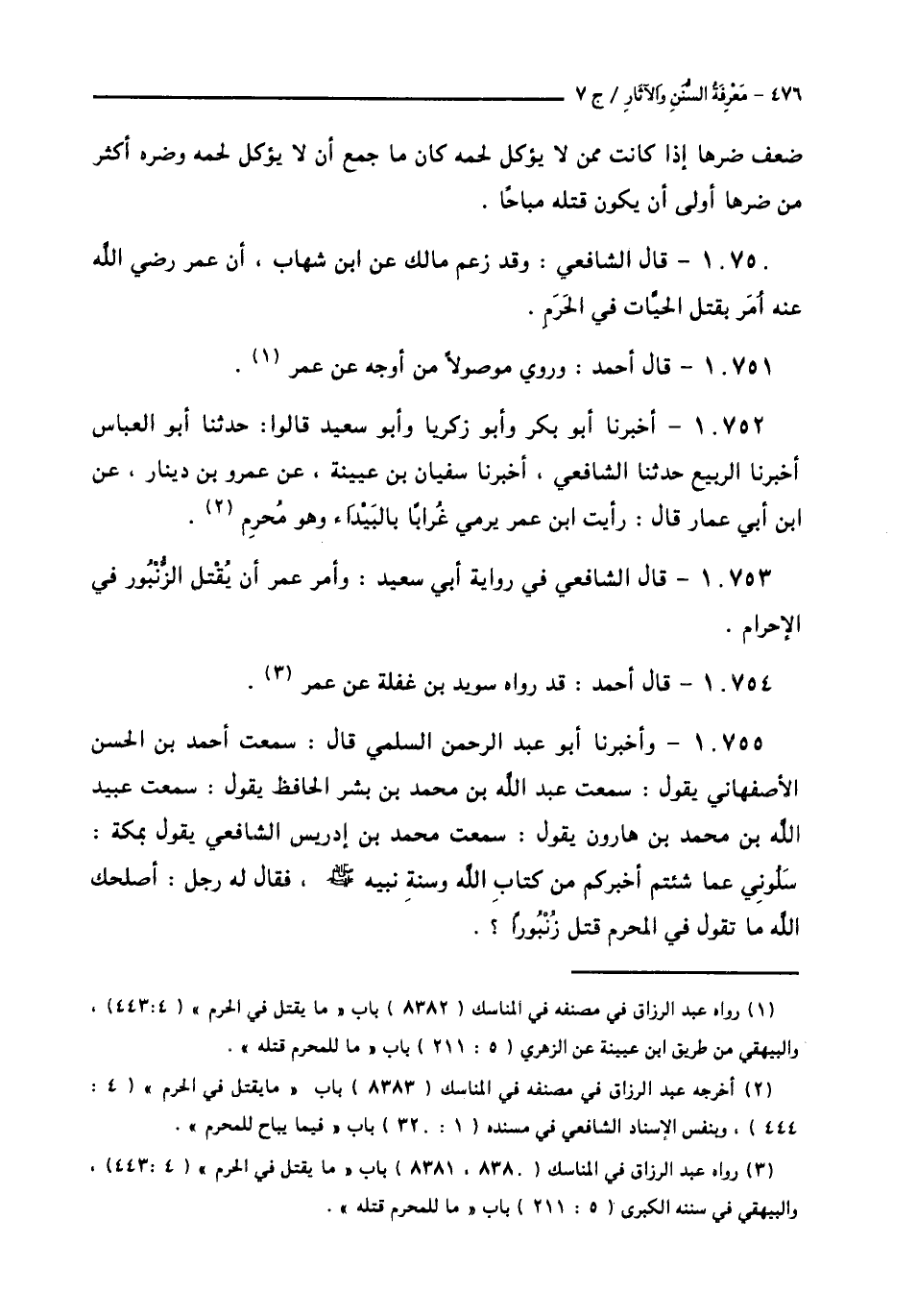 10753 - قَالَ الشَّافِعِيُّ فِي رِوَايَةِ أَبِي سَعِيدٍ: وَأَمَرَ عُمَرُ أَنْ يُقْتَلَ الزُّنْبُورُ فِي الْإِحْرَامِ "