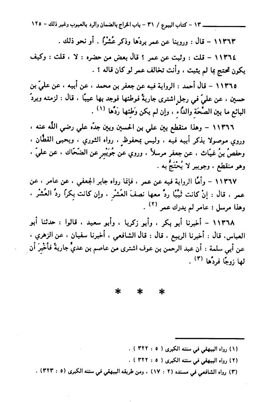 11368 - أَخْبَرَنَا أَبُو بَكْرٍ، وَأَبُو زَكَرِيَّا، وَأَبُو سَعِيدٍ، قَالُوا: حَدَّثَنَا أَبُو الْعَبَّاسِ قَالَ: أَخْبَرَنَا الرَّبِيعُ قَالَ: قَالَ الشَّافِعِيُّ: أَخْبَرَنَا سُفْيَانُ، عَنِ الزُّهْرِيِّ، عَنْ أَبِي سَلَمَةَ،: «أَنَّ عَبْدَ الرَّحْمَنِ بْنَ عَوْفٍ §اشْتَرَى مِنْ عَاصِمِ بْنِ عَدِيٍّ جَارِيَةً، فَأُخْبِرَ أَنَّ لَهَا زَوْجًا، فَرَدَّهَا»