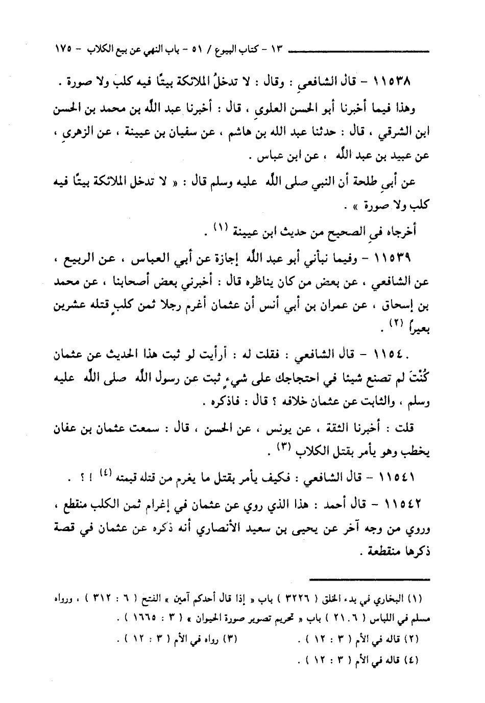 11538 - قَالَ الشَّافِعِيُّ: وَقَالَ: § «لَا تَدْخُلُ الْمَلَائِكَةُ بَيْتًا فِيهِ كَلْبٌ وَلَا صُورَةٌ». وَهَذَا فِيمَا أَخْبَرَنَا أَبُو الْحَسَنِ الْعَلَوِيُّ قَالَ: أَخْبَرَنَا عَبْدُ اللَّهِ بْنُ مُحَمَّدِ بْنِ الْحَسَنِ بْنِ الشَّرْقِيِّ قَالَ: حَدَّثَنَا عَبْدُ اللَّهِ بْنُ هَاشِمٍ، عَنْ سُفْيَانَ بْنِ عُيَيْنَةَ، عَنِ الزُّهْرِيِّ، عَنْ عُبَيْدِ بْنِ عَبْدِ اللَّهِ، عَنِ ابْنِ عَبَّاسٍ، عَنْ أَبِي طَلْحَةَ، أَنَّ النَّبِيَّ صَلَّى اللهُ عَلَيْهِ وَسَلَّمَ قَالَ: «لَا تَدْخُلُ الْمَلَائِكَةُ بَيْتًا فِيهِ كَلْبٌ وَلَا صُورَةٌ». أَخْرَجَاهُ فِي الصَّحِيحِ مِنْ حَدِيثِ ابْنِ عُيَيْنَةَ