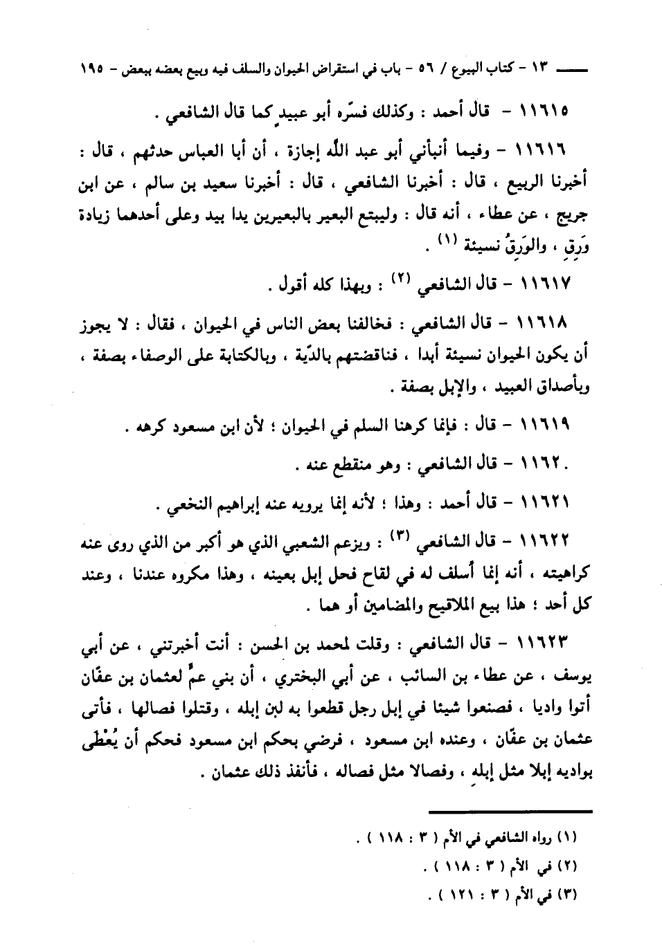 11618 - قَالَ الشَّافِعِيُّ: فَخالَفَنَا بَعْضُ النَّاسِ فِي الْحَيَوَانِ، فَقَالَ: لَا يَجُوزُ أَنْ يَكُونَ الْحَيَوَانُ نَسِيئَةً أَبَدًا، فَنَاقَضْتُهُمْ بِالدِّيَةِ، وَبِالْكِتَابَةِ عَلَى الْوَصْفَاءِ بِصِفَةٍ، وَبِأَصْدَاقِ الْعَبِيدِ وَالْإِبِلِ بِصِفَةٍ.