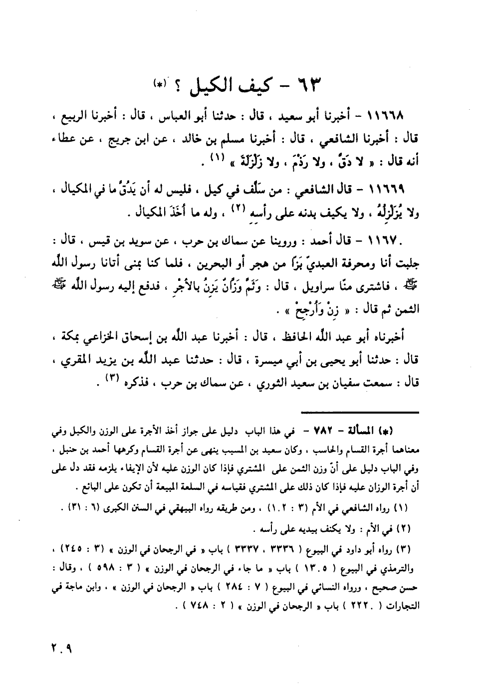 11670 - قَالَ أَحْمَدُ: وَرُوِّينَا، عَنْ سِمَاكِ بْنِ حَرْبٍ، عَنْ سُوَيْدِ بْنِ قَيْسٍ قَالَ: جَلَبْتُ أَنَا وَمَخْرَفَةُ الْعَبْدِيُّ بَزًّا مِنْ هَجَرَ أَوِ الْبَحْرَيْنِ، فَلَمَّا كُنَّا بِمِنًى أَتَانَا رَسُولُ اللَّهِ صَلَّى اللهُ عَلَيْهِ وَسَلَّمَ، فَاشْتَرَى مِنَّا سَرَاوِيلَ قَالَ: وَثَمَّ وَزَّانٌ يَزِنُ بِالْأَجْرِ، فَدَفَعَ إِلَيْهِ رَسُولُ اللَّهِ صَلَّى اللهُ عَلَيْهِ وَسَلَّمَ الثَّمَنَ ثُمَّ قَالَ: § «زِنْ وَأَرْجِحْ». أَخْبَرَنَاهُ أَبُو عَبْدِ اللَّهِ الْحَافِظُ قَالَ: أَخْبَرَنَا عَبْدُ اللَّهِ بْنُ إِسْحَاقَ الْخُزَاعِيُّ بِمَكَّةَ قَالَ: حَدَّثَنَا أَبُو يَحْيَى بْنُ أَبِي مَسَرَّةَ قَالَ: حَدَّثَنَا عَبْدُ اللَّهِ بْنُ يَزِيدَ الْمُقْرِئُ قَالَ: سَمِعْتُ سُفْيَانَ بْنَ سَعِيدٍ الثَّوْرِيَّ، عَنْ سِمَاكِ بْنِ حَرْبٍ، فَذَكَرَهُ -[210]-.