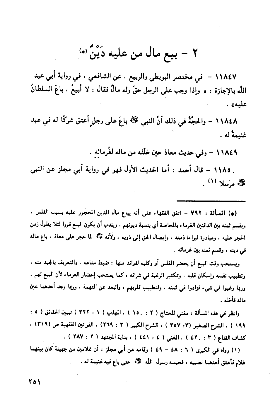 11847 - فِي مُخْتَصَرٌ الْبُوَيْطِيِّ، وَالرَّبِيعِ، عَنِ الشَّافِعِيِّ فِي رِوَايَةِ أَبَى عَبْدِ اللَّهِ بِالْإِجَازَةِ: " §وَإِذَا وَجَبَ عَلَى الرَّجُلِ حَقٌّ وَلَهُ مَالٌ فَقَالَ: لَا أَبِيعُ، بَاعَ السُّلْطَانُ عَلَيْهِ "،