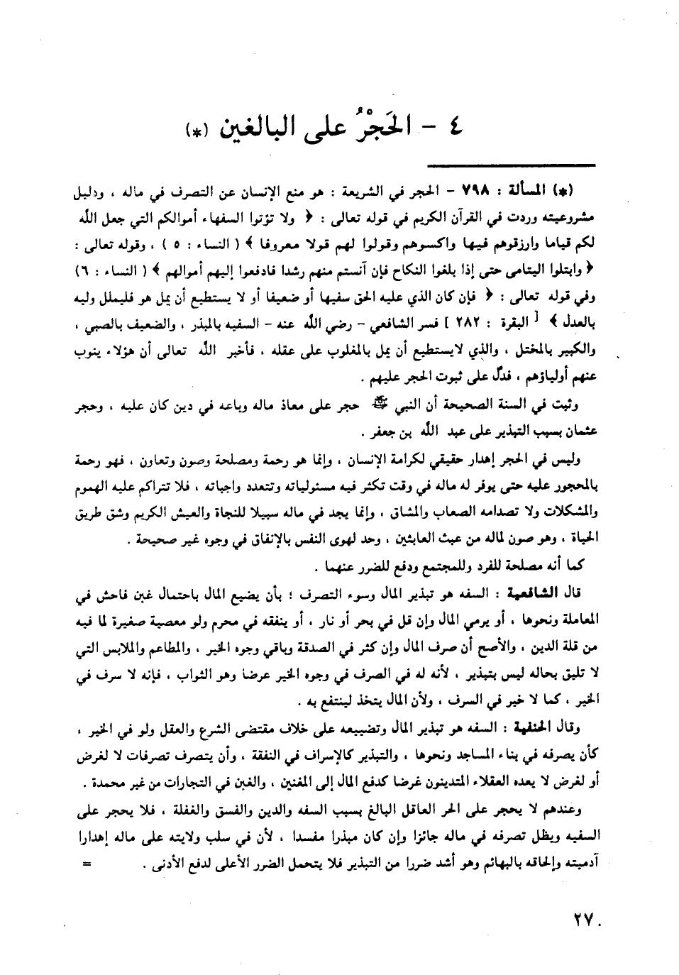 §الْحَجْرُ عَلَى الْبَالِغِينَ