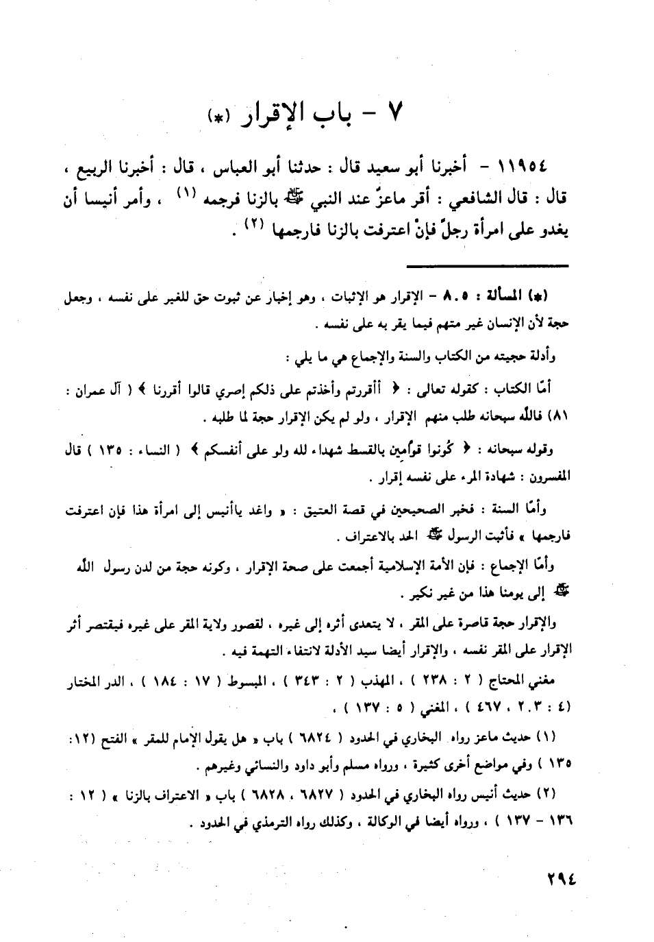 11954 - أَخْبَرَنَا أَبُو سَعِيدٍ قَالَ: حَدَّثَنَا أَبُو الْعَبَّاسِ قَالَ: أَخْبَرَنَا الرَّبِيعُ قَالَ: قَالَ الشَّافِعِيُّ: «§أَقَرَّ مَاعِزٌ عِنْدَ النَّبِيِّ صَلَّى اللهُ عَلَيْهِ وَسَلَّمَ بِالزِّنَا، فَرَجَمَهُ، وَأَمَرَ أُنَيْسًا أَنْ يَغْدُوَ عَلَى امْرَأَةِ رَجُلٍ فَإِنِ اعْتَرَفَتْ بِالزِّنَا فَارْجُمْهَا» -[295]-.