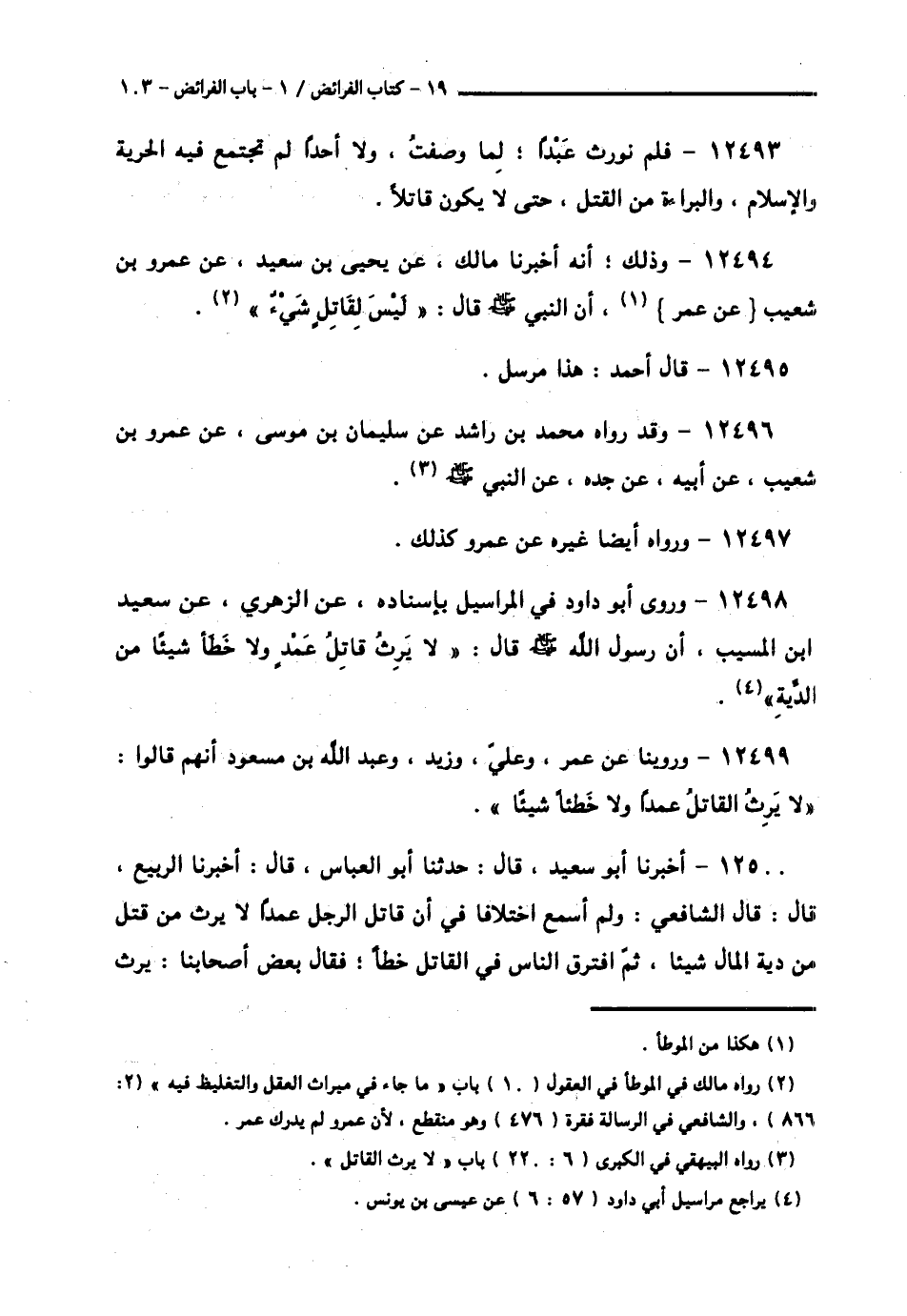 12499 - وَرُوِّينَا، عَنْ عُمَرَ، وَعَلِيٍّ، وَزَيْدٍ، وَعَبْدِ اللَّهِ بْنِ مَسْعُودٍ، أَنَّهُمْ قَالُوا: § «لَا يَرِثُ الْقَاتِلُ عَمْدًا وَلَا خَطَئًا شَيْئًا».