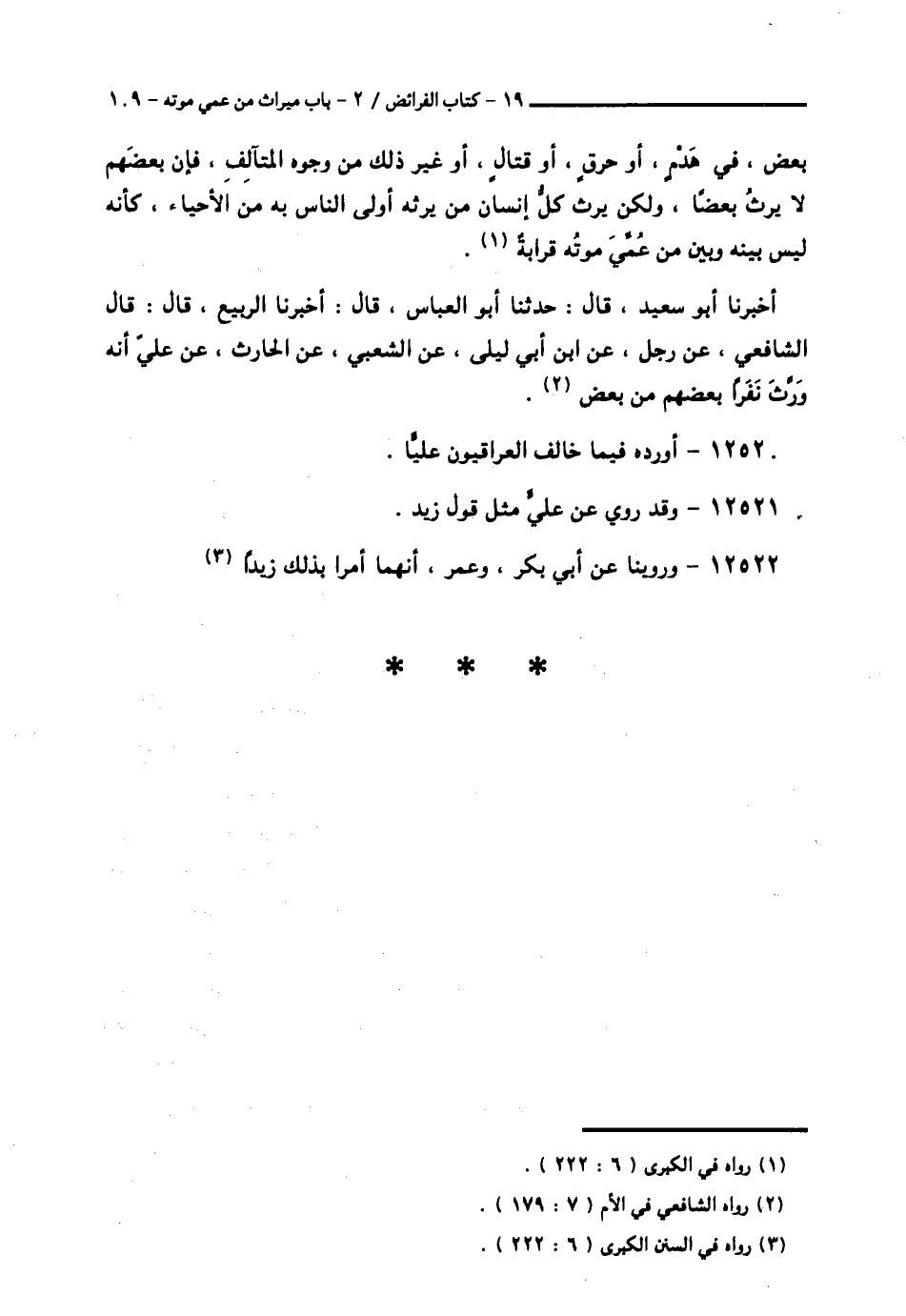 أَخْبَرَنَا أَبُو سَعِيدٍ قَالَ: حَدَّثَنَا أَبُو الْعَبَّاسِ قَالَ: أَخْبَرَنَا الرَّبِيعُ قَالَ: قَالَ الشَّافِعِيُّ عَنْ رَجُلٍ، عَنِ ابْنِ أَبِي لَيْلَى، عَنِ الشَّعْبِيِّ، عَنِ الْحَارِثِ، عَنْ عَلِيٍّ: «أَنَّهُ §وَرَّثَ نَفَرًا بَعْضَهُمْ مِنْ بَعْضٍ».