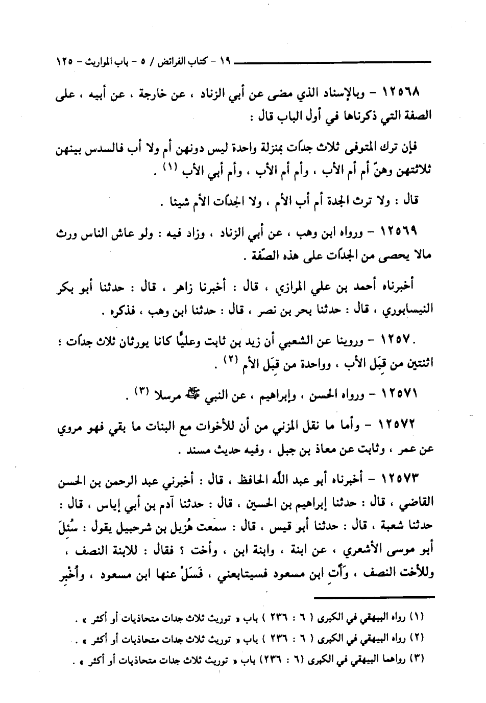 12569 - وَرَوَاهُ ابْنُ وَهْبٍ، عَنْ أَبِي الزِّنَادِ، وَزَادَ فِيهِ: «وَلَوْ عَاشَ النَّاسُ وَرِثَ مَا لَا يُحْصَى مِنَ الْجَدَّاتِ عَلَى هَذِهِ الصِّفَةِ». أَخْبَرَنَاهُ أَحْمَدُ بْنُ عَلِيٍّ الْمُرَازِيُّ قَالَ: أَخْبَرَنَا زَاهِرٌ قَالَ: حَدَّثَنَا أَبُو بَكْرٍ النَّيْسَابُورِيُّ قَالَ: حَدَّثَنَا بَحْرُ بْنُ نَصْرٍ قَالَ: حَدَّثَنَا ابْنُ وَهْبٍ، فَذَكَرَهُ