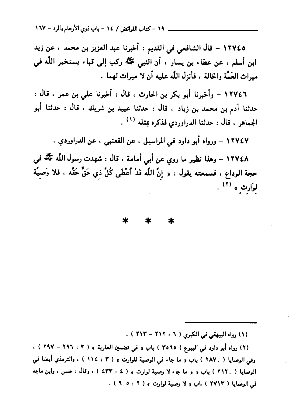 12748 - وَهَذَا نَظِيرُ مَا رُوِيَ، عَنْ أَبِي أُمَامَةَ قَالَ: شَهِدْتُ رَسُولَ اللَّهِ صَلَّى اللهُ عَلَيْهِ وَسَلَّمَ فِي حَجَّةِ الْوَدَاعِ، فَسَمِعْتُهُ يَقُولُ: «§إِنَّ اللَّهَ قَدْ أَعْطَى كُلَّ ذِي حَقٍّ حَقَّهُ، فَلَا وَصِيَّةَ لِوَارِثٍ» ......