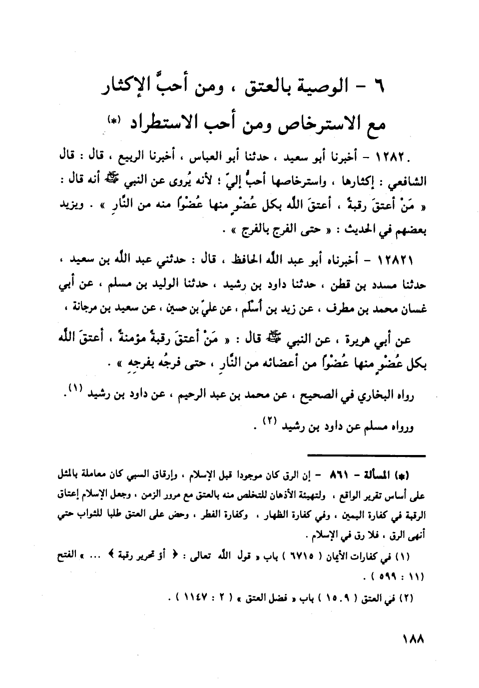 §الْوَصِيَّةُ بِالْعِتْقِ، وَمَنْ أَحَبَّ الْإِكْثَارَ مَعَ الِاسْتِرْخَاصِ وَمَنْ أَحَبَّ الِاسْتِطْرَادَ