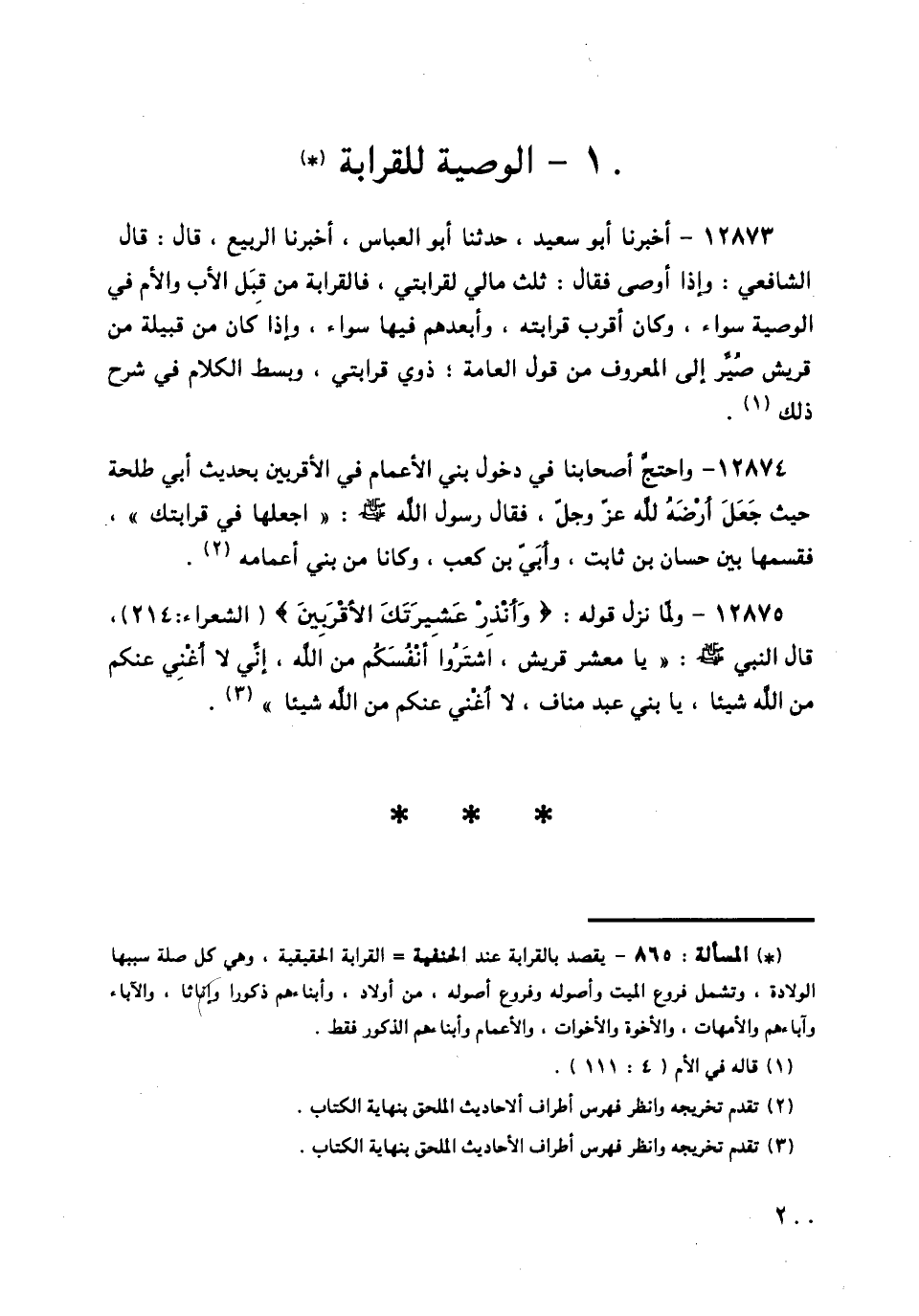12873 - أَخْبَرَنَا أَبُو سَعِيدٍ، حَدَّثَنَا أَبُو الْعَبَّاسِ، أَخْبَرَنَا الرَّبِيعُ قَالَ: قَالَ الشَّافِعِيُّ: وَإِذَا أَوْصَى فَقَالَ: ثُلُثُ مَالِي لِقَرَابَتِي، فَالْقَرَابَةُ مِنْ قِبَلِ الْأَبِ وَالْأُمِّ فِي الْوَصِيَّةِ سَوَاءٌ، وَكَانَ أَقْرَبُ قَرَابَتِهِ، وَأَبْعَدُهُمْ فِيهَا سَوَاءً، وَإِذَا كَانَ مِنْ قَبِيلَةٍ مِنْ قُرَيْشٍ صُيِّرَ إِلَى الْمَعْرُوفِ مِنْ قَوْلِ الْعَامَّةِ، ذَوِي قَرَابَتِي، وَبَسَطَ الْكَلَامَ فِي شَرْحِ ذَلِكَ،