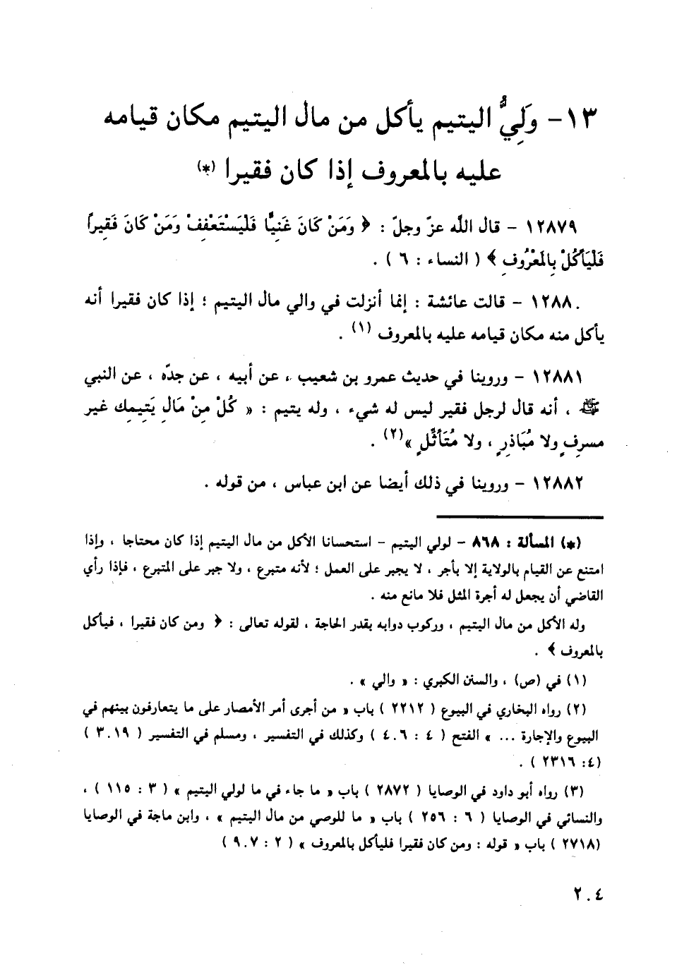 12879 - قَالَ اللَّهُ عَزَّ وَجَلَّ: {وَمَنْ كَانَ غَنِيًّا فَلْيَسْتَعْفِفْ وَمَنْ كَانَ فَقِيرًا فَلْيَأْكُلْ بِالْمَعْرُوفِ} [النساء: 6].