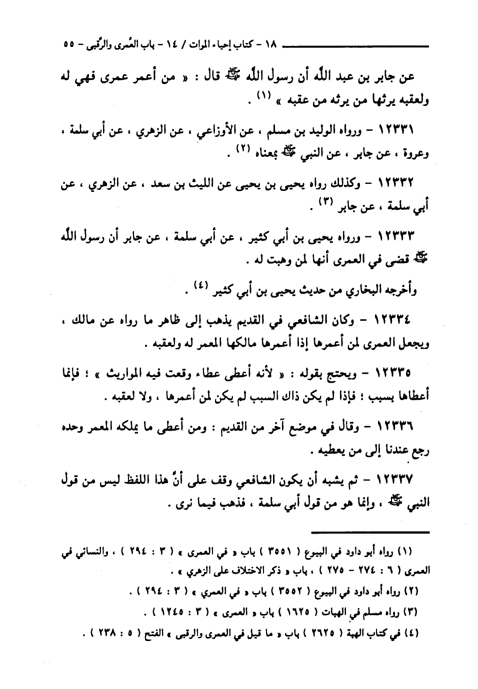 12333 - وَرَوَاهُ يَحْيَى بْنُ أَبِي كَثِيرٍ، عَنْ أَبِي سَلَمَةَ، عَنْ جَابِرٍ: «أَنَّ رَسُولَ اللَّهِ صَلَّى اللهُ عَلَيْهِ وَسَلَّمَ §قَضَى فِي الْعُمْرَى أَنَّهَا لِمَنْ وُهِبَتْ لَهُ». وَأَخْرَجَهُ الْبُخَارِيُّ مِنْ حَدِيثِ يَحْيَى بْنِ أَبِي كَثِيرٍ.