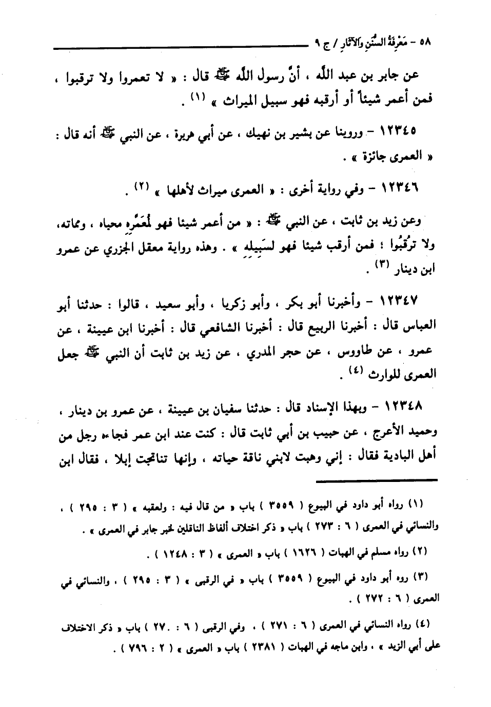 12345 - وَرُوِّينَا عَنْ بَشِيرِ بْنِ نَهِيكٍ، عَنْ أَبِي هُرَيْرَةَ، عَنِ النَّبِيِّ صَلَّى اللهُ عَلَيْهِ وَسَلَّمَ أَنَّهُ قَالَ: «§الْعُمْرَى جَائِزَةٌ».