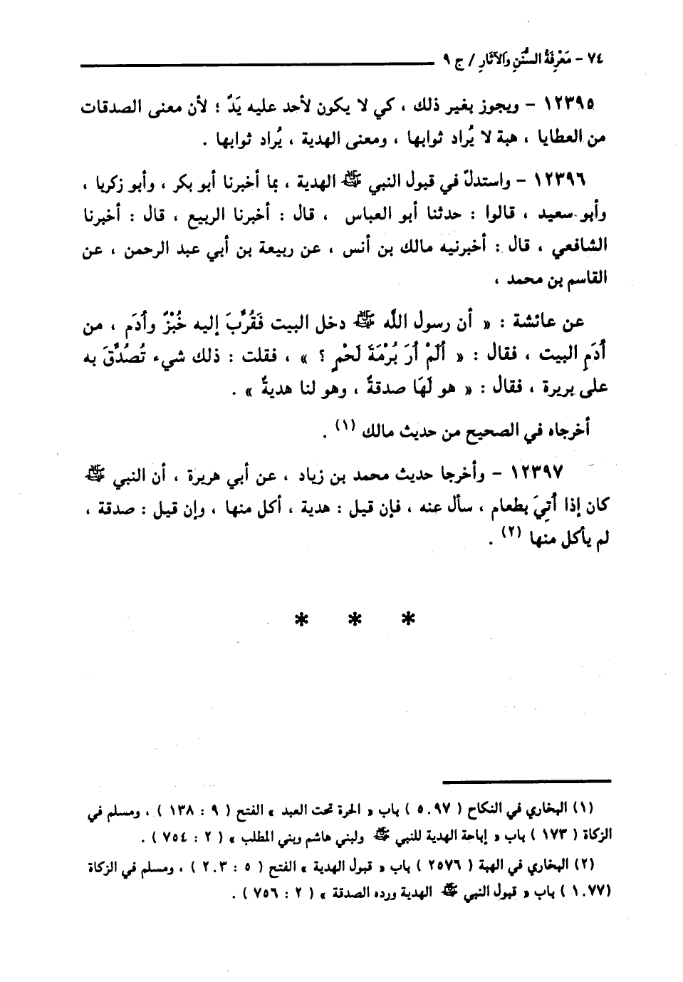 12397 - وَأَخْرَجَا حَدِيثَ مُحَمَّدِ بْنِ زِيَادٍ، عَنْ أَبِي هُرَيْرَةَ: " أَنَّ النَّبِيَّ صَلَّى اللهُ عَلَيْهِ وَسَلَّمَ كَانَ §إِذَا أُتِيَ بِطَعَامٍ سَأَلَ عَنْهُ، فَإِنْ قِيلَ: هَدِيَّةٌ، أَكَلَ مِنْهَا، وَإِنْ قِيلَ: صَدَقَةٌ، لَمْ يَأْكُلْ مِنْهَا "