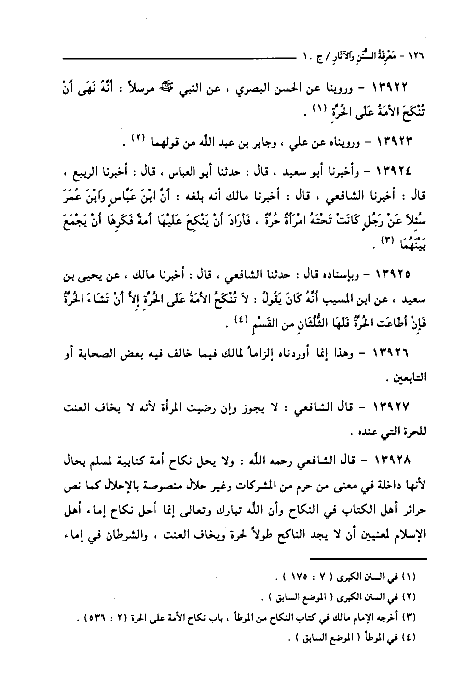 13922 - وَرُوِّينَا عَنِ الْحَسَنِ الْبَصْرِيِّ، عَنِ النَّبِيِّ صَلَّى اللهُ عَلَيْهِ وَسَلَّمَ مُرْسَلًا أَنَّهُ § «نَهَى أَنْ تُنْكَحَ الْأَمَةُ عَلَى الْحُرَّةِ»
