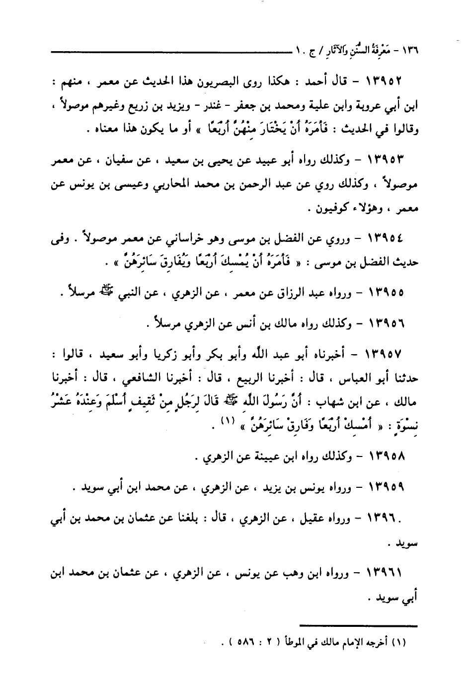 13958 - وَكَذَلِكَ رَوَاهُ ابْنُ عُيَيْنَةَ، عَنِ الزُّهْرِيِّ،
