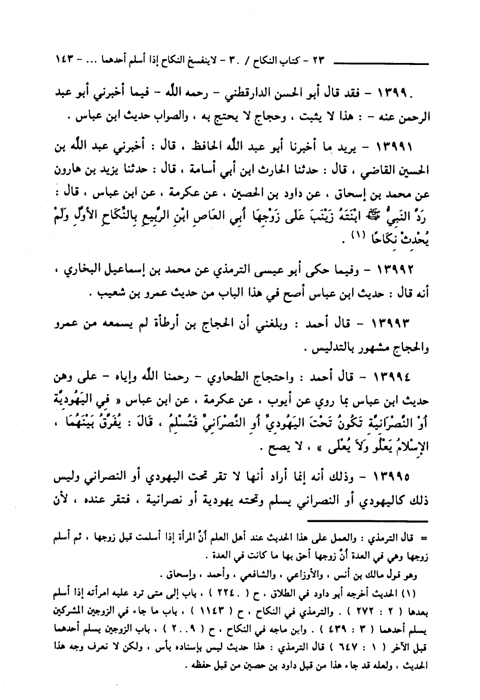 13994 - قَالَ أَحْمَدُ: وَاحْتِجَاجُ الطَّحَاوِيِّ، رَحَمَنَا اللَّهُ وَإِيَّاهُ، عَلَى وَهَنِ حَدِيثِ ابْنِ عَبَّاسٍ بِمَا رُوِيَ عَنْ أَيُّوبَ، عَنْ عِكْرِمَةَ، عَنِ ابْنِ عَبَّاسٍ فِي الْيَهُوَدِيَّةِ أَوِ النَّصْرَانِيَّةِ تَكُونُ تَحْتَ الْيَهُوَدِيِّ أَوِ النَّصْرَانِيِّ فَتُسْلِمُ قَالَ: «يُفَرَّقُ بَيْنَهُمَا، الْإِسْلَامُ يَعْلُو وَلَا يُعْلَى»، لَا يَصِحُّ،
