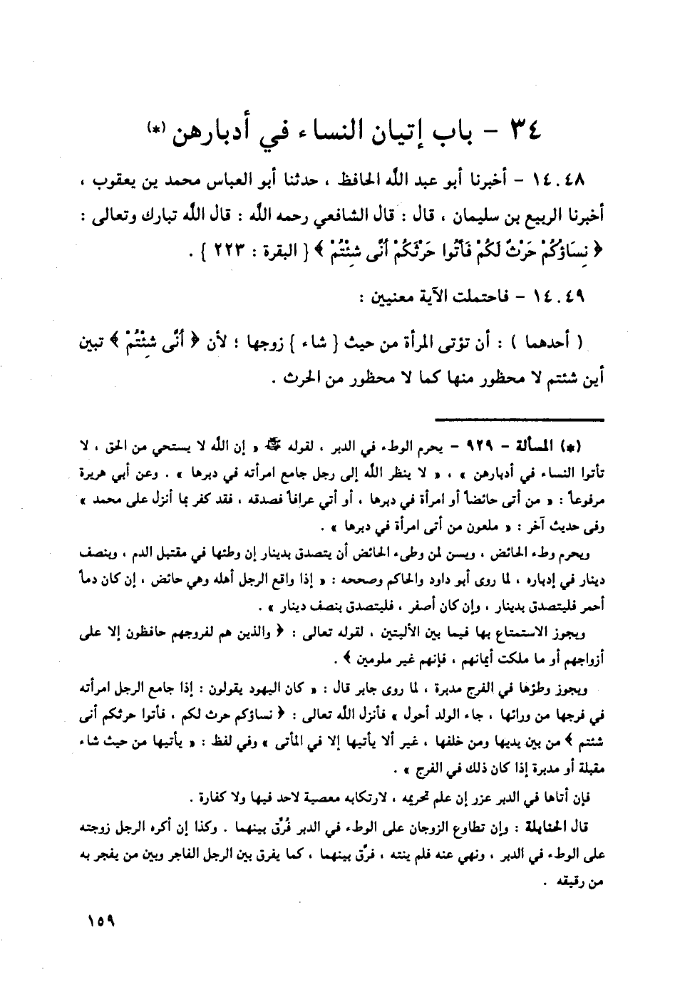 14048 - أَخْبَرَنَا أَبُو عَبْدِ اللَّهِ الْحَافِظُ، حَدَّثَنَا أَبُو الْعَبَّاسِ مُحَمَّدُ بْنُ يَعْقُوبَ، أَخْبَرَنَا الرَّبِيعُ بْنُ سُلَيْمَانَ قَالَ: قَالَ الشَّافِعِيُّ رَحِمَهُ اللَّهُ: قَالَ اللَّهُ تَبَارَكَ وَتَعَالَى: {نِسَاؤُكُمْ حَرْثٌ لَكُمْ فَأْتُوا حَرْثَكُمْ أَنَّى شِئْتُمْ} [البقرة: 223]،