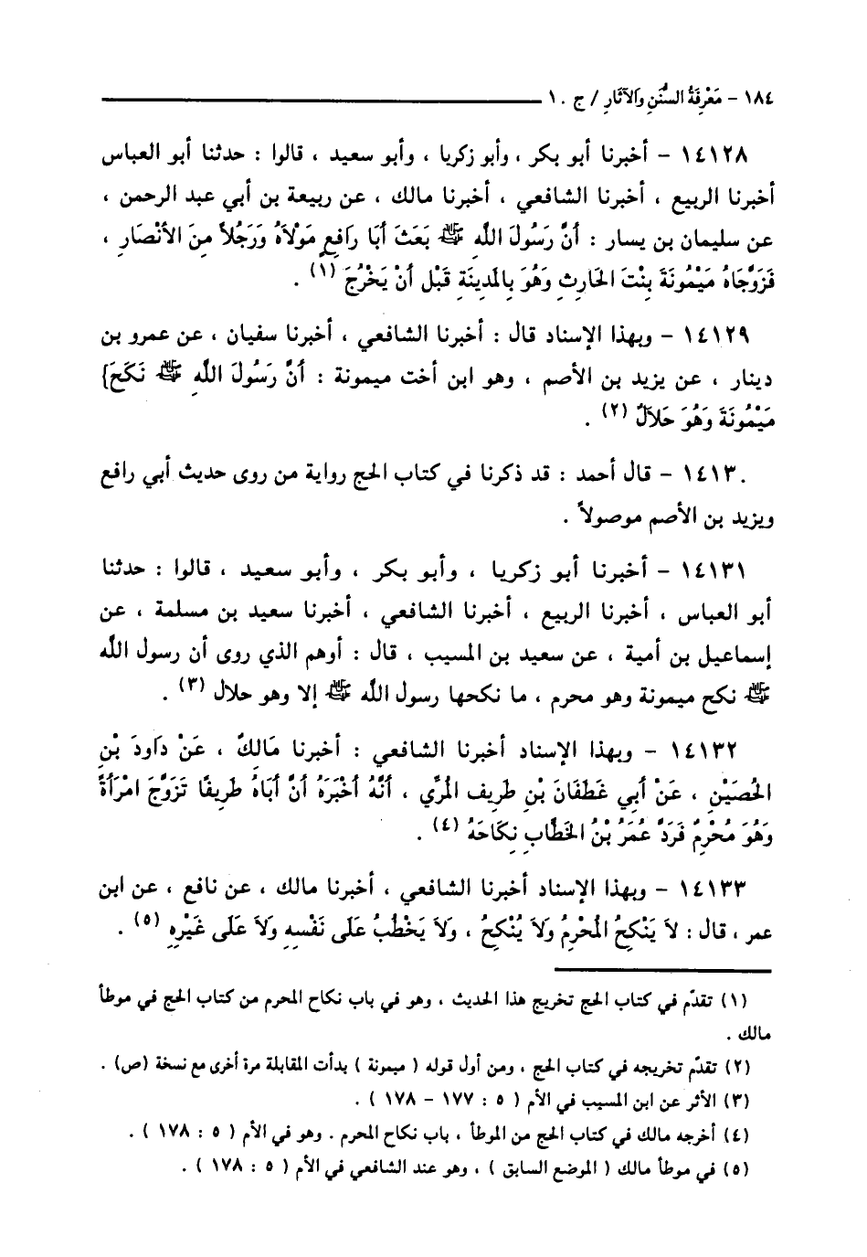14133 - وَبِهَذَا الْإِسْنَادِ أَخْبَرَنَا الشَّافِعِيُّ، أَخْبَرَنَا مَالِكٌ، عَنْ نَافِعٍ، عَنِ ابْنِ عُمَرَ قَالَ: «§لَا يَنْكِحُ الْمُحْرِمُ وَلَا يُنْكِحُ، وَلَا يَخْطُبُ عَلَى نَفْسِهِ وَلَا عَلَى غَيْرِهِ»
