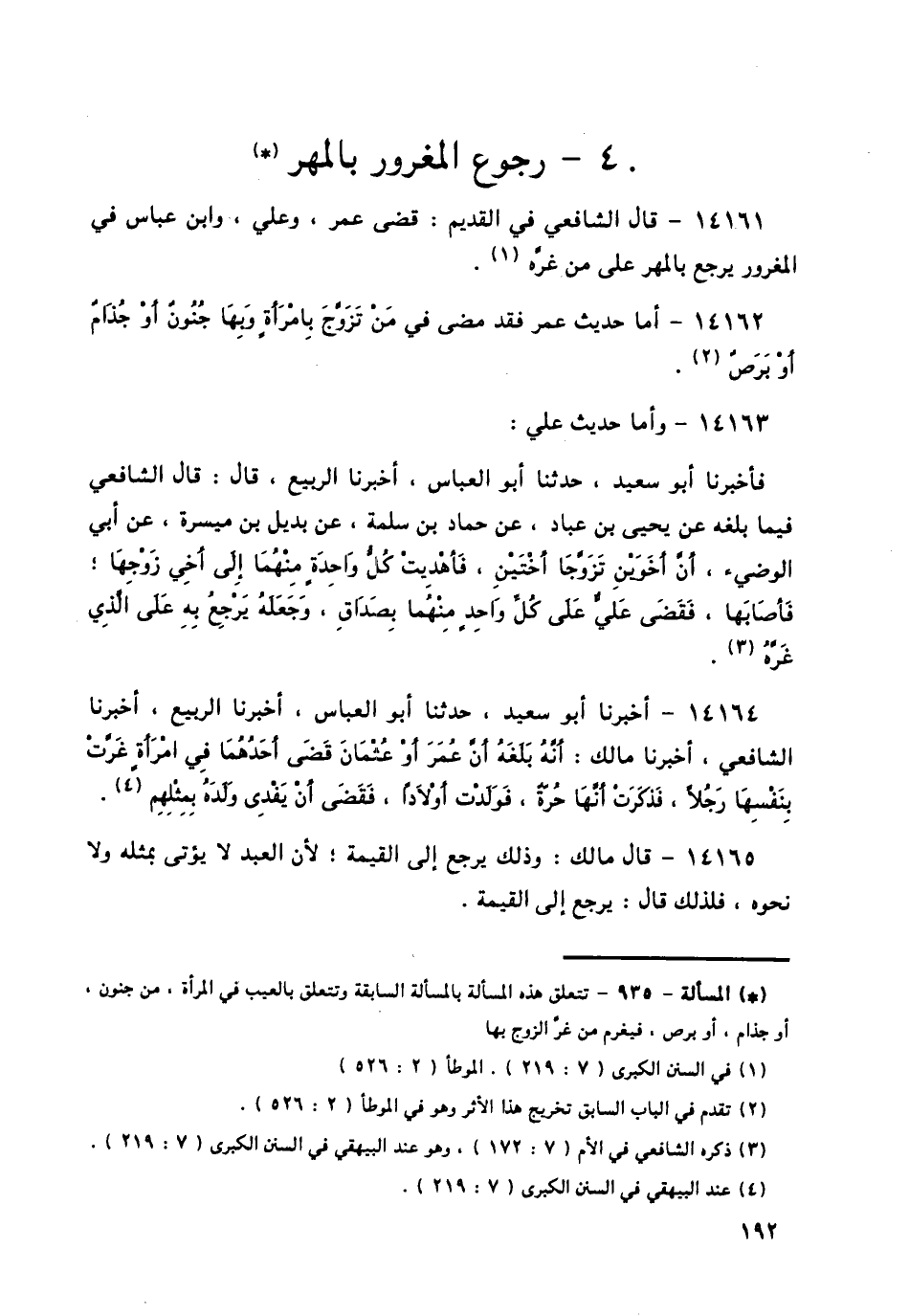 14162 - أَمَا حَدِيثُ عُمَرَ فَقَدْ مَضَى فِي مَنْ تَزَوَّجَ بِامْرَأَةٍ وَبِهَا جُنُونٌ أَوْ جُذَامٌ أَوْ بَرَصٌ