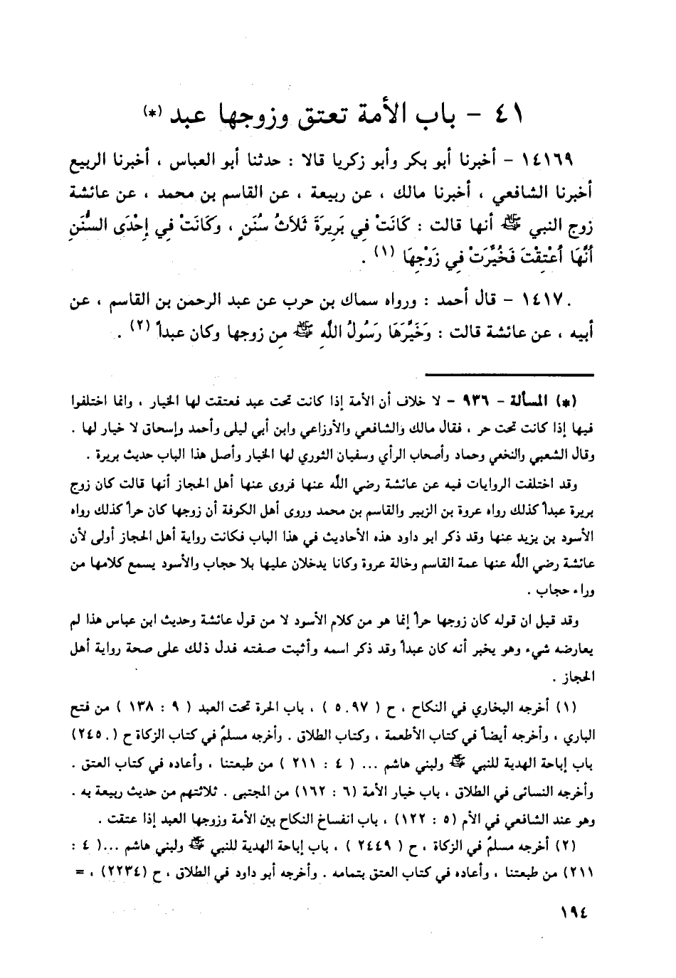 14170 - قَالَ أَحْمَدُ: وَرَوَاهُ سِمَاكُ بْنُ حَرْبٍ، عَنْ عَبْدِ الرَّحْمَنِ بْنِ الْقَاسِمِ، عَنْ أَبِيهِ، عَنْ عَائِشَةَ قَالَتْ: § «وَخَيَّرَهَا رَسُولُ اللَّهِ صَلَّى اللهُ عَلَيْهِ وَسَلَّمَ مِنْ زَوْجِهَا وَكَانَ عَبْدًا» -[195]-، أَخْبَرَنَاهُ أَبُو عَبْدِ اللَّهِ الْحَافِظُ قَالَ: أَخْبَرَنِي أَبُو النَّضْرِ الطُّوسِيُّ، حَدَّثَنَا مُحَمَّدُ بْنُ أَحْمَدَ بْنِ النَّضْرِ، حَدَّثَنَا مُعَاوِيَةُ بْنُ عَمْرٍو، حَدَّثَنَا زَائِدَةُ بْنُ قُدَامَةَ، عَنْ سِمَاكٍ، فَذَكَرَهُ، أَخْرَجَهُ مُسْلِمٌ فِي الصَّحِيحِ، مِنْ حَدِيثِ زَائِدَةَ