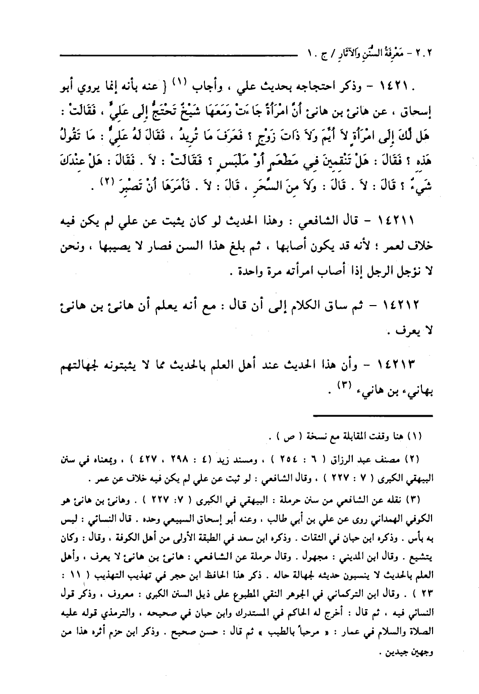 14213 - وَأَنَّ هَذَا الْحَدِيثَ عِنْدَ أَهْلِ الْعِلْمِ بِالْحَدِيثِ مِمَّا لَا يُثْبِتُونَهُ لِجَهَالَتِهِمْ بِهَانِئِ بْنِ هَانِئٍ -[203]-