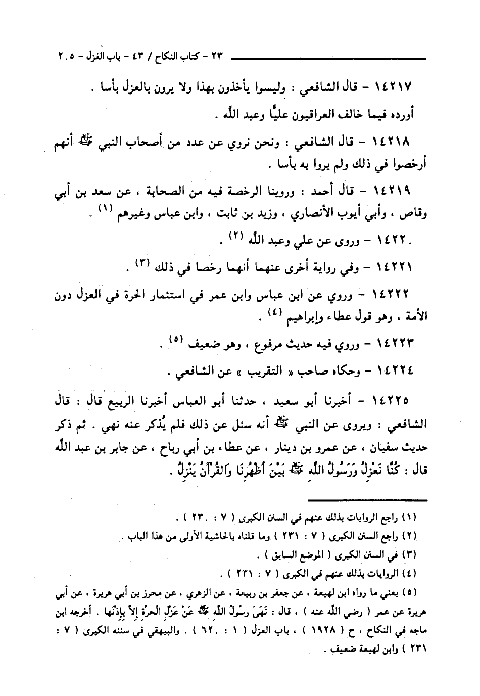 ثُمَّ ذَكَرَ حَدِيثَ سُفْيَانَ، عَنْ عَمْرِو بْنِ دِينَارٍ، عَنْ عَطَاءِ بْنِ أَبِي رَبَاحٍ، عَنْ جَابِرِ بْنِ عَبْدِ اللَّهِ قَالَ: «§كُنَّا نَعْزِلُ وَرَسُولُ اللَّهِ صَلَّى اللهُ عَلَيْهِ وَسَلَّمَ بَيْنَ أَظْهُرِنَا وَالْقُرْآنُ يَنْزِلُ» -[206]- أَخْبَرَنَاهُ أَبُو عَبْدِ اللَّهِ الْحَافِظُ، أَخْبَرَنَا أَبُو بَكْرِ بْنُ إِسْحَاقَ، حَدَّثَنَا بِشْرُ بْنُ مُوسَى، حَدَّثَنَا الْحُمَيْدِيُّ، حَدَّثَنَا سُفْيَانُ، حَدَّثَنَا عَمْرٌو، فَذَكَرَهُ بِمِثْلِهِ، أَخْرَجَهُ الْبُخَارِيُّ، وَمُسْلِمٌ فِي الصَّحِيحِ، مِنْ حَدِيثِ سُفْيَانَ،