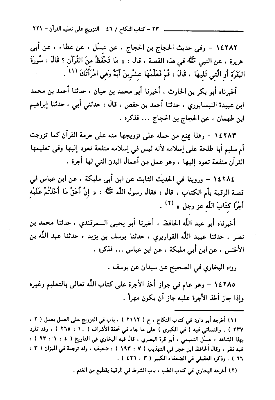 14284 - وَرُوِّينَا فِي الْحَدِيثِ الثَّابِتِ عَنِ ابْنِ أَبِي مُلَيْكَةَ، عَنِ ابْنِ عَبَّاسٍ فِي قِصَّةِ الرُّقْيَةِ بِأُمِّ الْكِتَابِ قَالَ: فَقَالَ رَسُولُ اللَّهِ صَلَّى اللهُ عَلَيْهِ وَسَلَّمَ: «إِنَّ §أَحَقَّ مَا أَخَذْتُمْ عَلَيْهِ أَجْرًا كِتَابُ اللَّهِ عَزَّ وَجَلَّ»، أَخْبَرَنَاهُ أَبُو عَبْدِ اللَّهِ الْحَافِظُ، أَخْبَرَنَا أَبُو يَحْيَى السَّمَرْقَنْدِيُّ، حَدَّثَنَا مُحَمَّدُ بْنُ نَصْرٍ، حَدَّثَنَا عُبَيْدُ اللَّهِ الْقَوَارِيرِيُّ، حَدَّثَنَا يُوسُفُ بْنُ يَزِيدَ، حَدَّثَنَا عَبْدُ اللَّهِ بْنُ الْأَخْنَسِ، عَنِ ابْنِ أَبِي مُلَيْكَةَ، عَنِ ابْنِ عَبَّاسٍ، فَذَكَرَهُ، رَوَاهُ الْبُخَارِيُّ فِي الصَّحِيحِ، عَنْ سِيدَانَ، عَنْ يُوسُفَ،