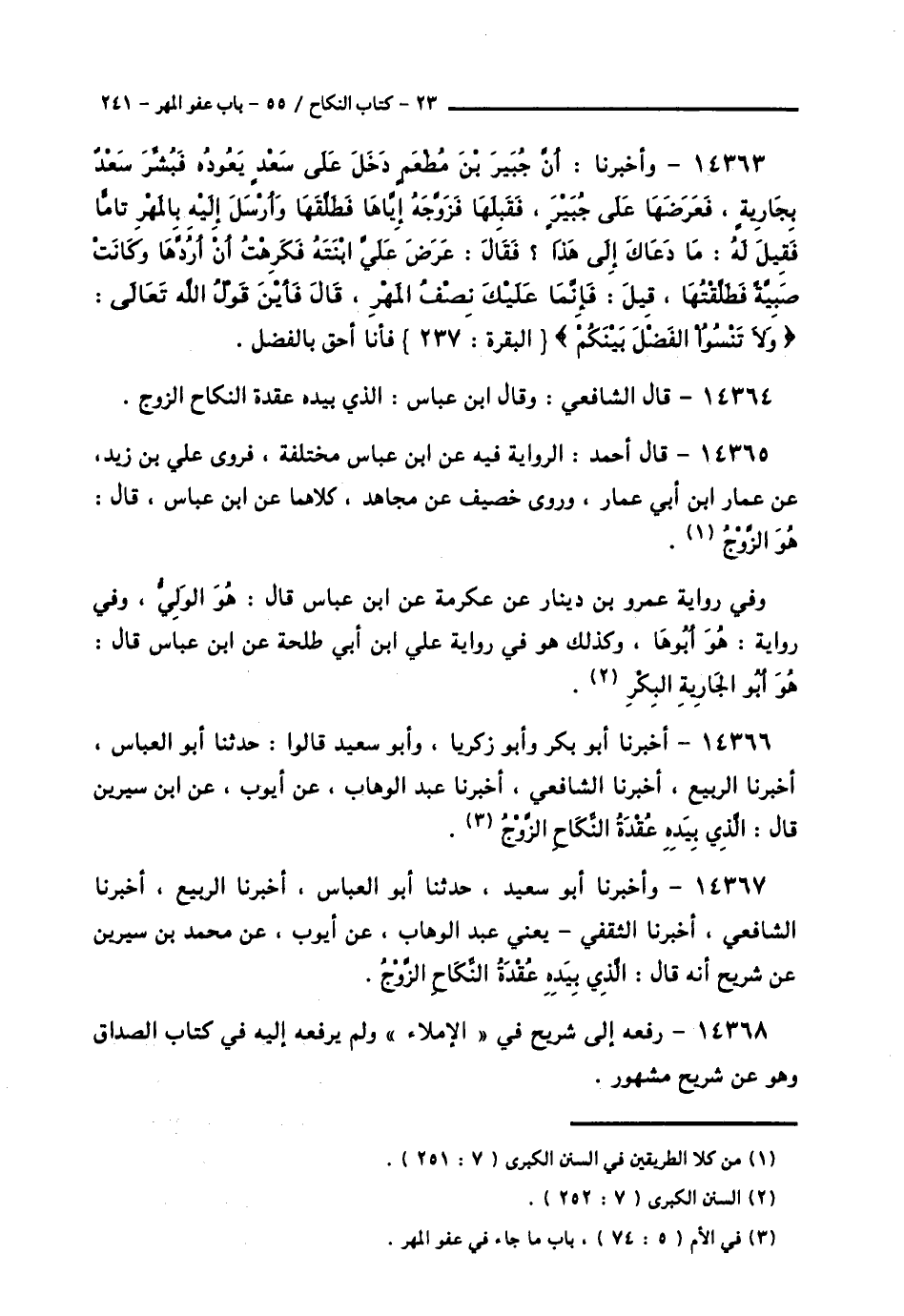 14364 - قَالَ الشَّافِعِيُّ: وَقَالَ ابْنُ عَبَّاسٍ: الَّذِي بِيَدِهِ عُقْدَةُ النِّكَاحِ الزَّوْجُ