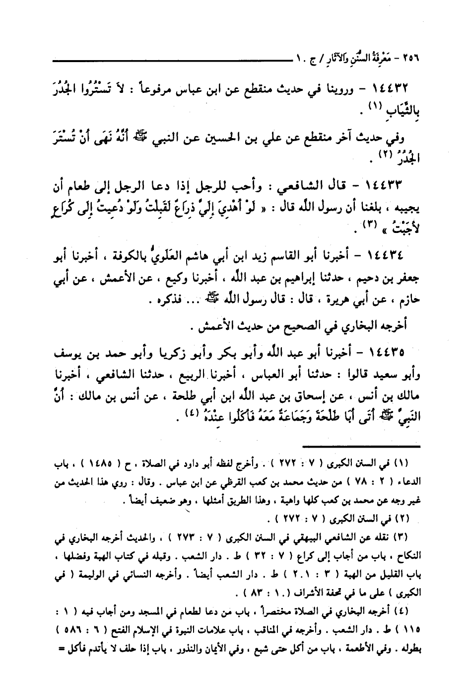 14432 - وَرُوِّينَا فِي حَدِيثٍ مُنْقَطِعٍ عَنِ ابْنِ عَبَّاسٍ مَرْفُوعًا: § «لَا تَسْتُرُوا الْجُدُرَ بِالثِّيَابِ»