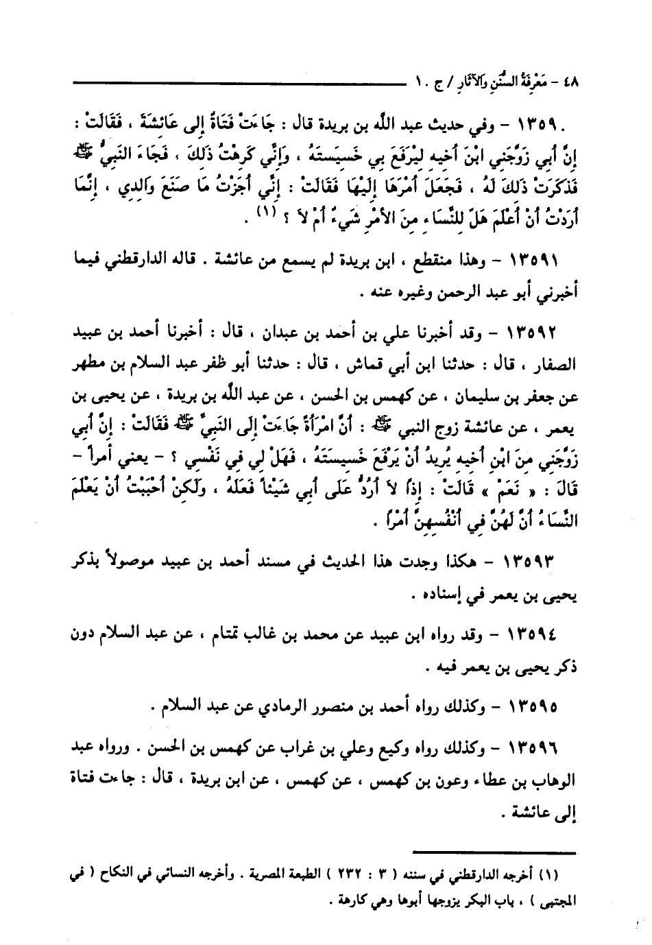 13591 - وَهَذَا مُنْقَطِعٌ، ابْنُ بُرَيْدَةَ لَمْ يَسْمَعْ مِنْ عَائِشَةَ قَالَهُ الدَّارَقُطْنِيُّ فِيمَا أَخْبَرَنِي أَبُو عَبْدِ الرَّحْمَنِ وَغَيْرُهُ عَنْهُ