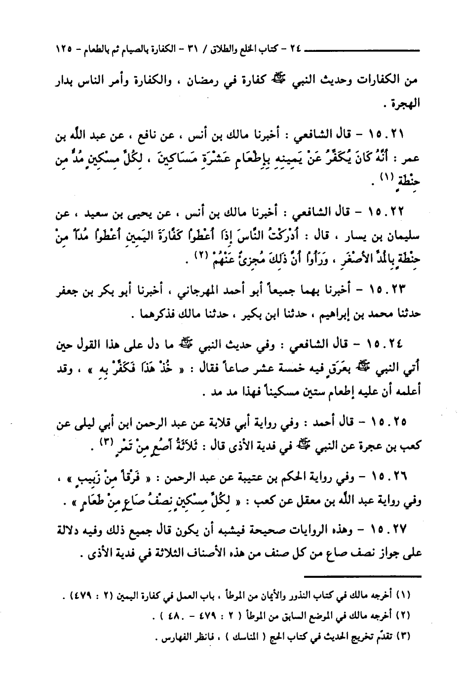 15030 - قَالَ الشَّافِعِيُّ: وَمُدُّ هِشَامٍ مُدٌّ وَثُلُثٌ أَوْ مَدٌّ وَنِصْفٌ، وَقَالَ فِي رِوَايَةِ حَرْمَلَةَ: مُدُّ هِشَامِ بْنِ عَبْدِ الْمَلِكِ هُوَ مُدٌّ وَنِصْفٌ بِمُدِّ النَّبِيِّ صَلَّى اللهُ عَلَيْهِ وَسَلَّمَ.