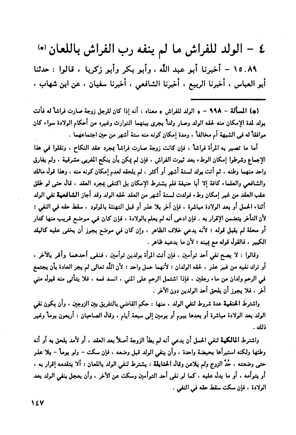 §الْوَلَدُ لِلْفِرَاشِ مَا لَمْ يَنْفِهِ رَبُّ الْفِرَاشِ بِاللِّعَانِ