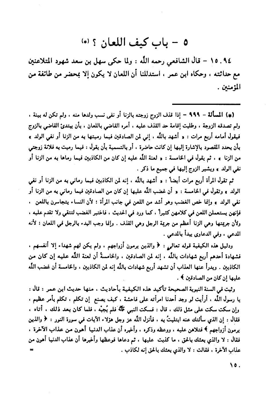 15094 - قَالَ الشَّافِعِيُّ رَحِمَهُ اللَّهُ: وَلَمَّا حَكَى سَهْلُ بْنُ سَعْدٍ شُهُودَ الْمُتَلَاعِنَيْنِ مَعَ حَدَاثَتِهِ، وَحَكَاهُ ابْنُ عُمَرَ، اسْتَدْلَلْنَا أَنَّ اللِّعَانَ لَا يَكُونُ إِلَّا بِمَحْضَرٍ مِنْ طَائِفَةٍ مِنَ الْمُؤْمِنِينَ