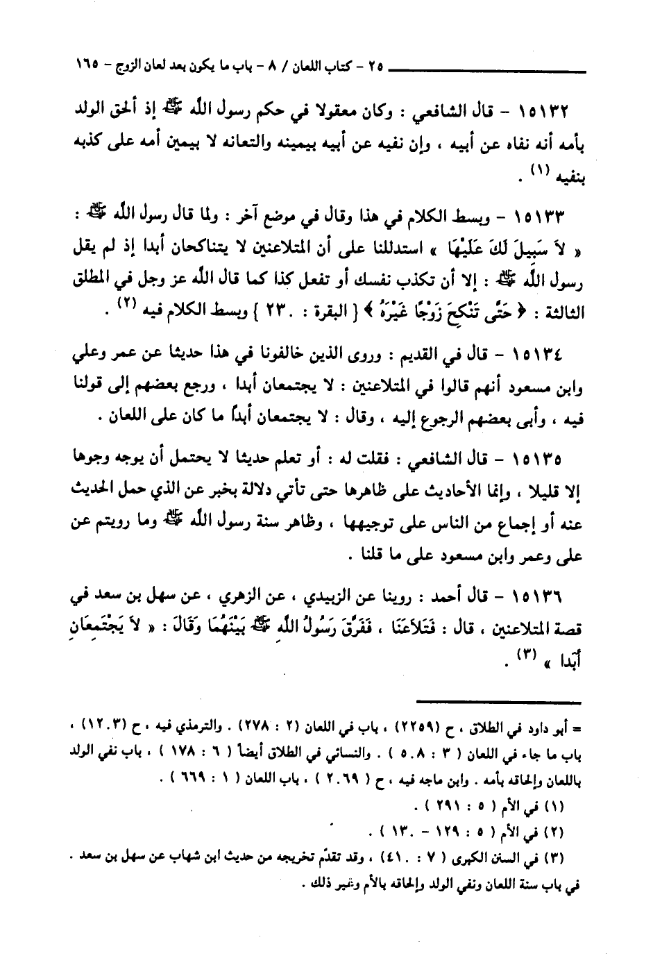 15136 - قَالَ أَحْمَدُ: رُوِّينَا عَنِ الزُّبَيْدِيِّ، عَنِ الزُّهْرِيِّ، عَنْ سَهْلِ بْنِ سَعْدٍ فِي قِصَّةِ الْمُتَلَاعِنَيْنِ قَالَ: فَتَلَاعَنَا فَفَرَّقَ رَسُولُ اللَّهِ صَلَّى اللهُ عَلَيْهِ وَسَلَّمَ بَيْنَهُمَا وَقَالَ: «§لَا يَجْتَمِعَانِ أَبَدًا» -[166]-. أَخْبَرَنَاهُ أَبُو عَمْرٍو الْأَدِيبُ، أَخْبَرَنَا أَبُو بَكْرٍ الْإِسْمَاعِيلِيُّ، حَدَّثَنَا ابْنُ أَبِي حَسَّانَ، أَخْبَرَنَا عَبْدُ الرَّحْمَنِ بْنُ إِبْرَاهِيمَ، حَدَّثَنَا الْوَلِيدُ هُوَ ابْنُ مُسْلِمٍ، وَعُمَرُ هُوَ ابْنُ عَبْدِ الْوَاحِدِ قَالَا: حَدَّثَنَا الْأَوْزَاعِيُّ، عَنِ الزُّبَيْدِيِّ، فَذَكَرَهُ.