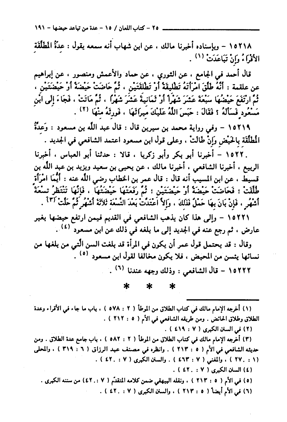 15218 - وَبِإِسْنَادِهِ أَخْبَرَنَا مَالِكٌ، عَنِ ابْنِ شِهَابٍ، أَنَّهُ سَمِعَهُ يَقُولُ: § «عِدَّةُ الْمُطَلَّقَةِ الْأَقْرَاءُ، وَإِنَّ تَبَاعَدَتْ». قَالَ أَحْمَدُ فِي الْجَامِعِ: عَنِ الثَّوْرِيِّ، عَنْ حَمَّادٍ وَالْأَعْمَشِ وَمَنْصُورٍ عَنْ إِبْرَاهِيمَ عَنْ عَلْقَمَةَ أَنَّهُ طَلَّقَ امْرَأَتَهُ تَطْلِيقَةً أَوْ تَطْلِيقَتَيْنِ، ثُمَّ حَاضَتْ حَيْضَةً أَوْ حَيْضَتَيْنِ، ثُمَّ ارْتَفَعَ حَيْضُهَا سَبْعَةَ عَشَرَ شَهْرًا أَوْ ثَمَانِيَةَ عَشَرَ شَهْرًا، ثُمَّ مَاتَتْ، فَجَاءَ إِلَى ابْنِ مَسْعُودٍ فَسَأَلَهُ، فَقَالَ: حَبَسَ اللَّهُ عَلَيْكَ مِيرَاثَهَا، فَوَرَّثَهُ مِنْهَا.