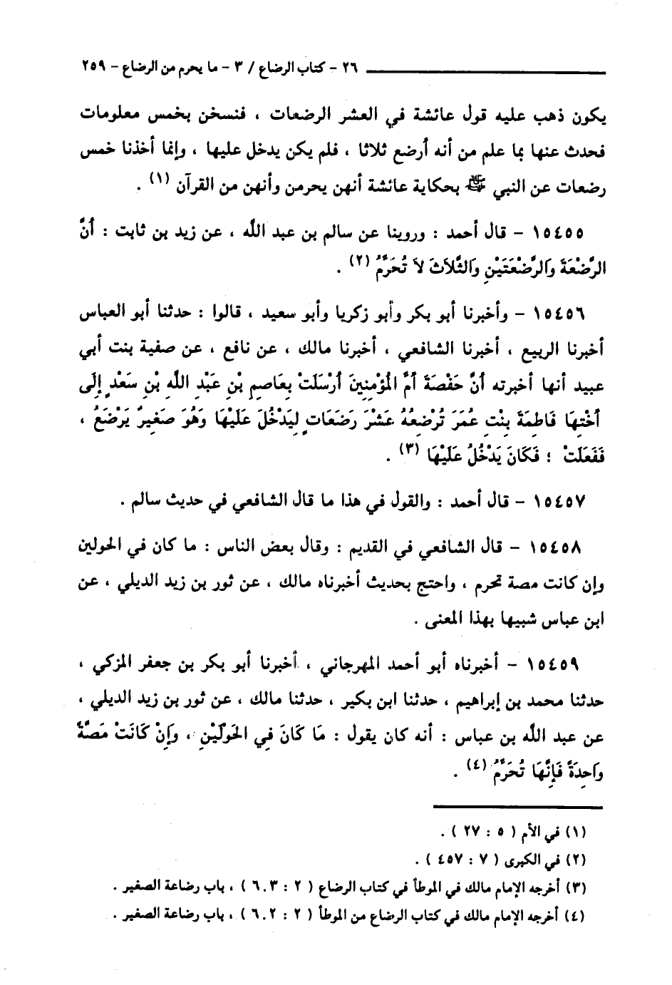 15455 - قَالَ أَحْمَدُ: وَرُوِّينَا عَنْ سَالِمِ بْنِ عَبْدِ اللَّهِ، عَنْ زَيْدِ بْنِ ثَابِتٍ، «أَنَّ §الرَّضْعَةَ وَالرَّضْعَتَيْنِ وَالثَّلَاثَ لَا تُحَرِّمُ»