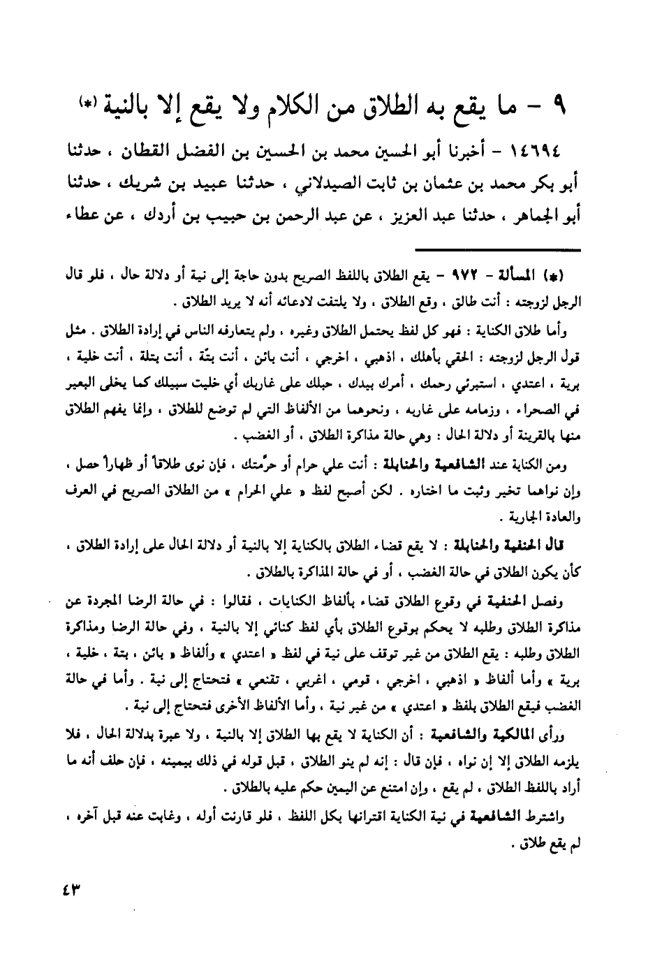 §مَا يَقَعُ بِهِ الطَّلَاقُ مِنَ الْكَلَامِ وَلَا يَقَعُ إِلَّا بِالنِّيَّةِ