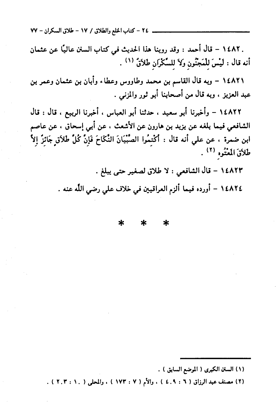 14822 - وَأَخْبَرَنَا أَبُو سَعِيدٍ، حَدَّثَنَا أَبُو الْعَبَّاسِ، أَخْبَرَنَا الرَّبِيعُ قَالَ: قَالَ الشَّافِعِيُّ فِيمَا بَلَغَهُ، عَنْ يَزِيدَ بْنِ هَارُونَ، عَنِ الْأَشْعَثَ، عَنْ أَبِي إِسْحَاقَ، عَنْ عَاصِمِ بْنِ ضَمْرَةَ، عَنْ عَلِيٍّ، أَنَّهُ قَالَ: § «اكْتُمُوا الصِّبْيَانَ النِّكَاحَ فَإِنَّ كُلَّ طَلَاقٍ جَائِزٌ إِلَّا طَلَاقَ الْمَعْتُوهِ».