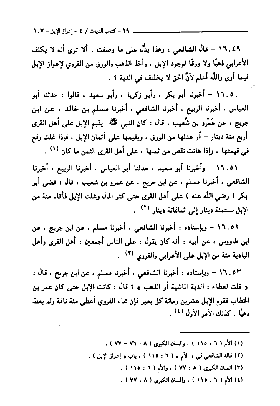 16053 - وَبِإِسْنَادِهِ: أَخْبَرَنَا الشَّافِعِيُّ , أَخْبَرَنَا مُسْلِمٌ , عَنِ ابْنِ جُرَيْجٍ , قَالَ: " قُلْتُ لِعَطَاءٍ: الدِّيَةُ الْمَاشِيَةُ أَوِ الذَّهَبُ "؟ قَالَ: كَانَتَ الْإِبِلُ حَتَّى كَانَ عُمَرُ بْنُ الْخَطَّابِ §فَقَوَّمَ الْإِبِلَ عِشْرِينَ وَمِائَةً كُلُّ بَعِيرٍ فَإِنْ شَاءَ الْقَرَوِيُّ أَعْطَى مِائَةَ نَاقَةٍ وَلَمْ يُعْطِ ذَهَبًا , كَذَلِكَ الْأَمْرُ الْأَوَّلُ