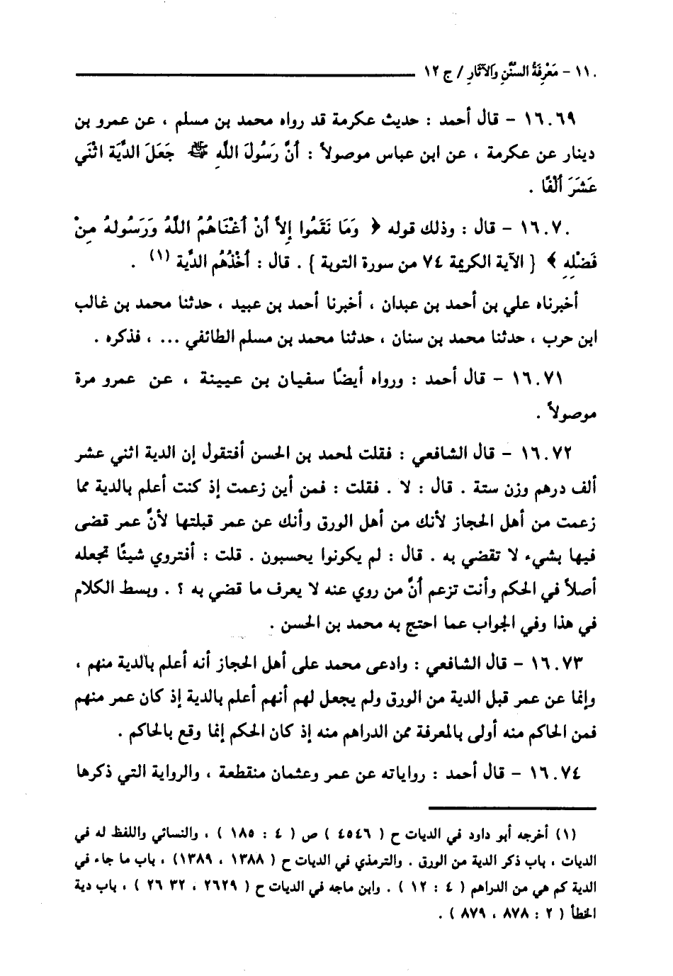 16069 - قَالَ أَحْمَدُ: حَدِيثُ عِكْرِمَةَ قَدْ رَوَاهُ مُحَمَّدُ بْنُ مُسْلِمٍ , عَنْ عَمْرِو بْنِ دِينَارٍ , عَنْ عِكْرِمَةَ , عَنِ ابْنِ عَبَّاسٍ مَوْصُولًا: أَنَّ رَسُولَ اللَّهِ صَلَّى اللهُ عَلَيْهِ وَسَلَّمَ: «§جَعَلَ الدِّيَةَ اثْنَيْ عَشَرَ أَلْفًا» ,