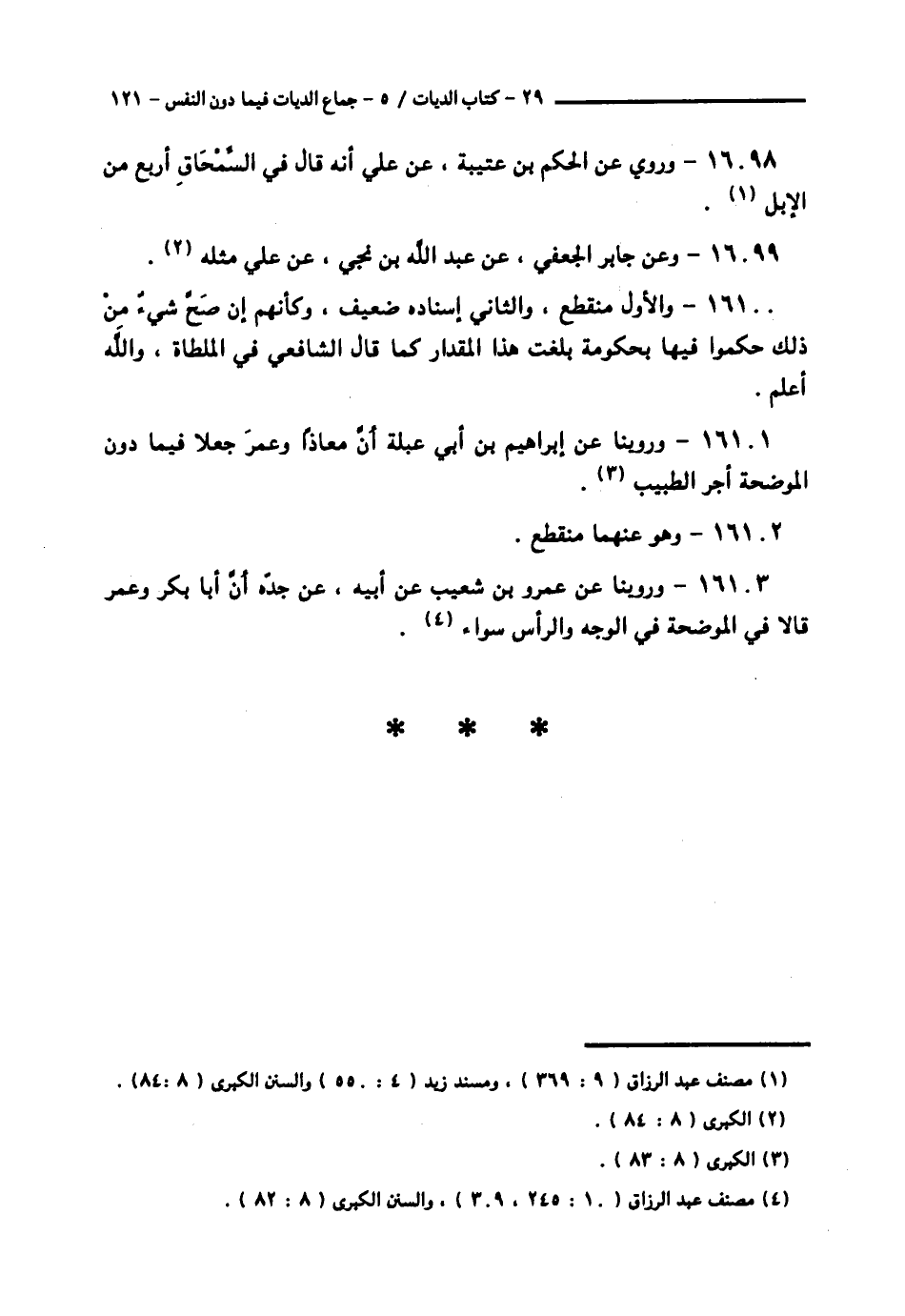 16098 - وَرُوِيَ عَنِ الْحَكَمِ بْنِ عُتَيْبَةَ , عَنْ عَلِيٍّ , أَنَّهُ قَالَ: § «فِي السِّمْحَاقِ أَرْبَعٌ مِنَ الْإِبِلِ» ,