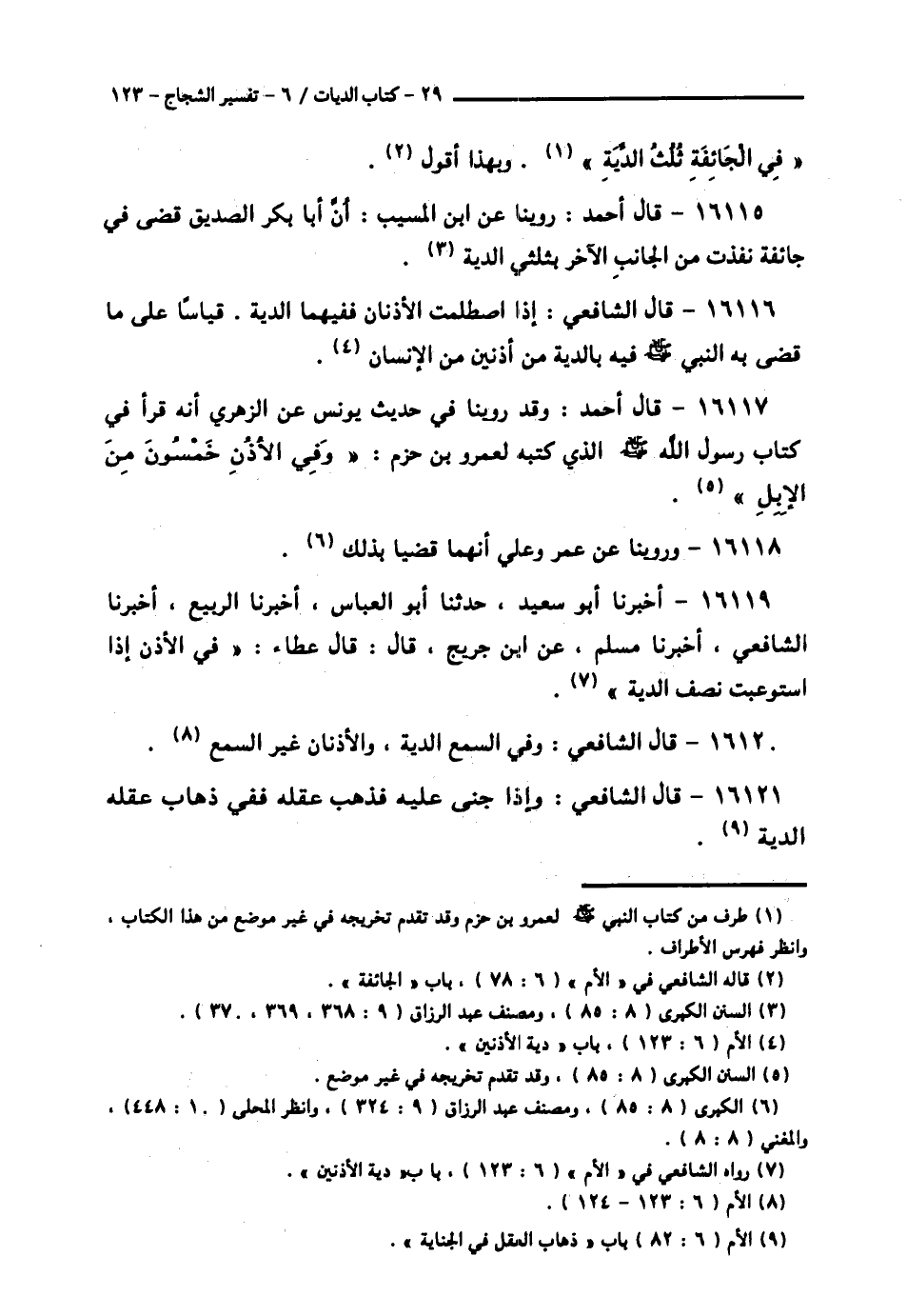16117 - قَالَ أَحْمَدُ: وَقَدْ رُوِّينَا فِي حَدِيثِ يُونُسَ , عَنِ الزُّهْرِيِّ , أَنَّهُ قَرَأَ فِي كِتَابِ رَسُولِ اللَّهِ صَلَّى اللهُ عَلَيْهِ وَسَلَّمَ الَّذِي كَتَبَهُ لِعَمْرِو بْنِ حَزْمٍ: § «وَفِي الْأُذُنِ خَمْسُونَ مِنَ الْإِبِلِ»