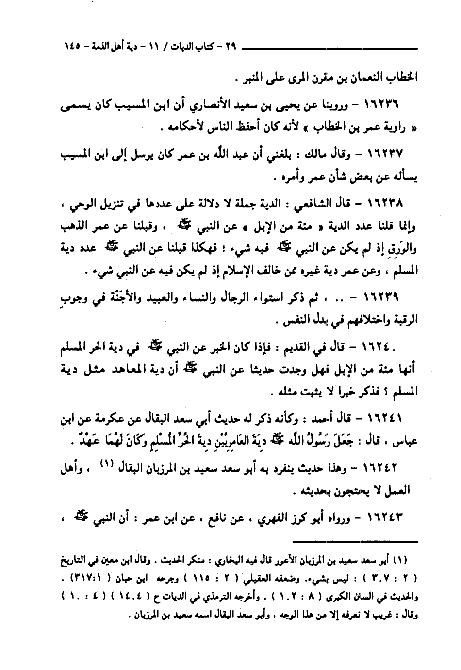16243 - وَرَوَاهُ أَبُو كُرْزٍ الْفِهْرِيُّ , عَنْ نَافِعٍ , عَنِ ابْنِ عُمَرَ , أَنَّ النَّبِيَّ صَلَّى اللهُ عَلَيْهِ وَسَلَّمَ , § «-[146]- وَدَى ذِمِّيًّا دِيَةَ الْمُسْلِمِ» ,
