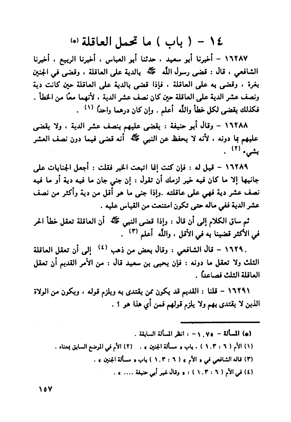 16290 - قَالَ الشَّافِعِيُّ: وَقَالَ بَعْضُ مَنْ ذَهَبَ إِلَى أَنْ تَعْقِلَ الْعَاقِلَةُ الثُّلُثَ وَلَا تَعْقِلُ مَا دُونَهُ , فَإِنَّ يَحْيَى بْنَ سَعِيدٍ قَالَ: مِنَ الْأَمْرِ الْقَدِيمِ أَنْ تَعْقِلَ الْعَاقِلَةُ الثُّلُثَ فَصَاعِدًا ,