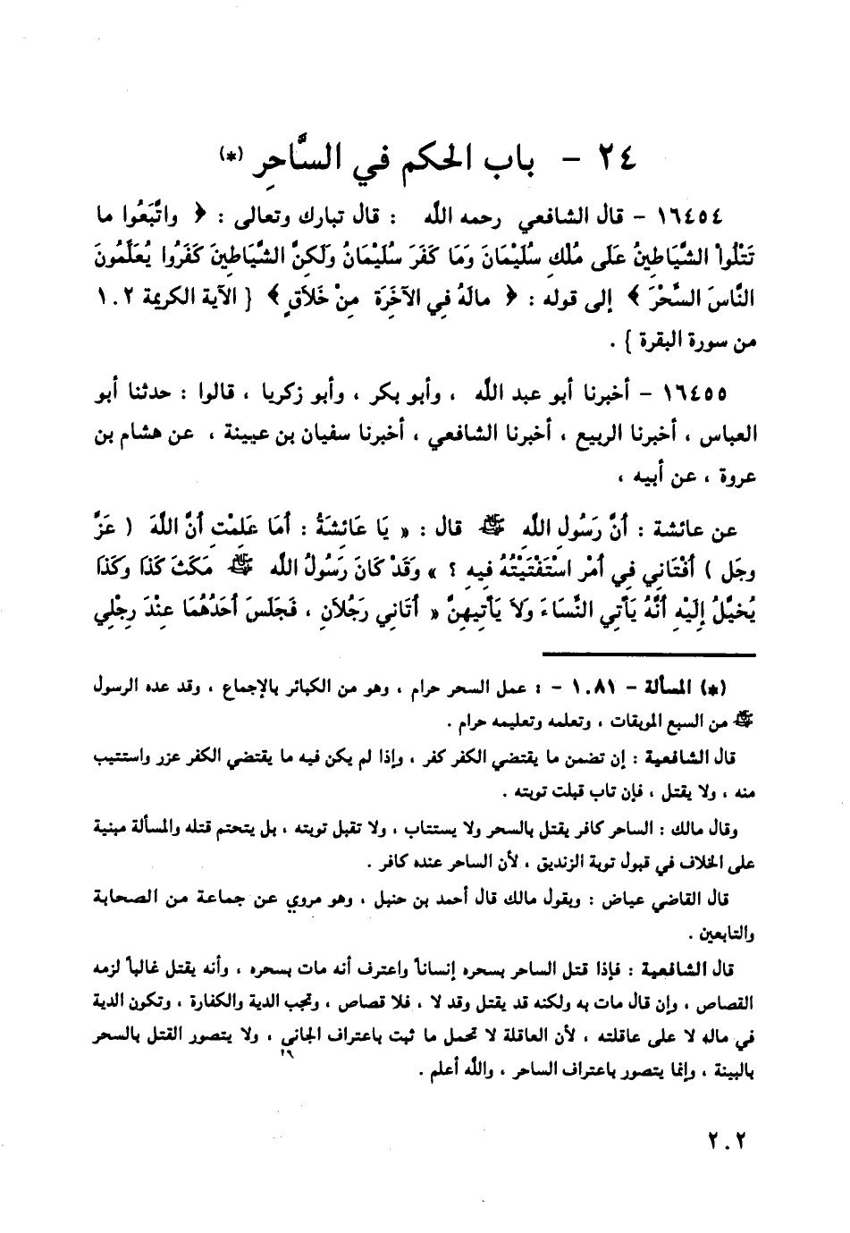 16454 - قَالَ الشَّافِعِيُّ رَحِمَهُ اللَّهُ: قَالَ تَبَارَكَ وَتَعَالَى: " {وَاتَّبَعُوا مَا تَتْلُوا الشَّيَاطِينُ عَلَى مُلْكِ سُلَيْمَانَ وَمَا كَفَرَ سُلَيْمَانُ وَلَكِنَّ الشَّيَاطِينَ كَفَرُوا يُعَلِّمُونَ النَّاسَ السِّحْرَ} [البقرة: 102] إِلَى قَوْلِهِ: {مَا لَهُ فِي الْآخِرَةِ مِنْ خَلَاقٍ} [البقرة: 102] "