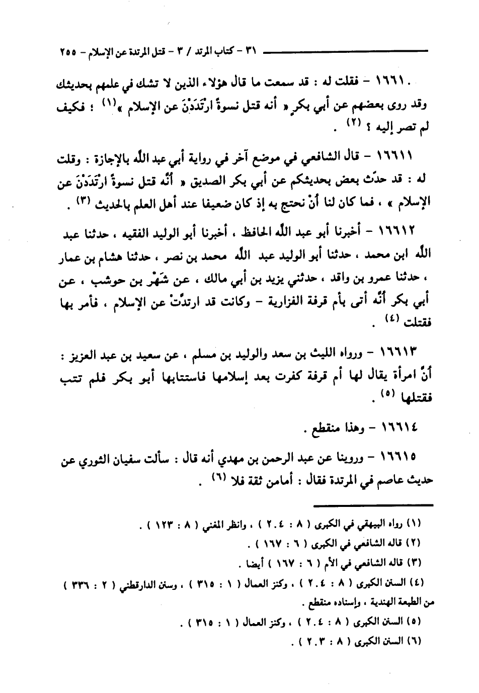 16615 - وَرُوِّينَا عَنْ عَبْدِ الرَّحْمَنِ بْنِ مَهْدِيٍّ , أَنَّهُ قَالَ: سَأَلْتُ سُفْيَانَ الثَّوْرِيَّ عَنْ حَدِيثِ عَاصِمٍ فِي " الْمُرْتَدَّةِ، فَقَالَ: أَمَا مِنْ ثِقَةٍ فَلَا "