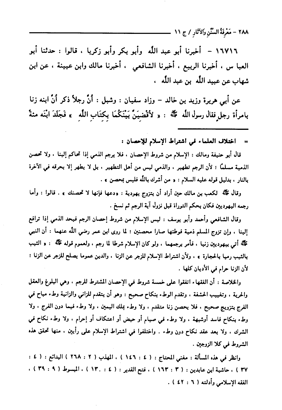 16716 - أَخْبَرَنَا أَبُو عَبْدِ اللَّهِ , وَأَبُو بَكْرٍ , وَأَبُو زَكَرِيَّا , قَالُوا: حَدَّثَنَا أَبُو الْعَبَّاسِ , أَخْبَرَنَا الرَّبِيعُ , أَخْبَرَنَا الشَّافِعِيُّ , أَخْبَرَنَا مَالِكٌ , وَابْنُ عُيَيْنَةَ , عَنِ ابْنِ شِهَابٍ , عَنْ عُبَيْدِ اللَّهِ بْنِ عَبْدِ اللَّهِ , عَنْ أَبِي هُرَيْرَةَ , وَزَيْدِ بْنِ خَالِدٍ , وَزَادَ سُفْيَانُ: وَشِبْلٍ: أَنَّ §" رَجُلًا ذَكَرَ أَنَّ ابْنَهُ زَنَا بِامْرَأَةِ رَجُلٍ , فَقَالَ رَسُولُ اللَّهِ صَلَّى اللهُ عَلَيْهِ وَسَلَّمَ: «لَأَقْضِيَنَّ بَيْنَكُمَا بِكِتَابِ اللَّهِ» , فَجَلَدَ ابْنَهُ مِائَةً -[289]- وَغَرَّبَهُ عَامًا , وَأَمَرَ أُنَيْسًا أَنْ يَغْدُوَ عَلَى امْرَأَةِ الْآخَرِ , فَإِنِ اعْتَرَفَتْ رَجَمَهَا , فَاعْتَرَفَتْ , فَرَجَمَهَا "