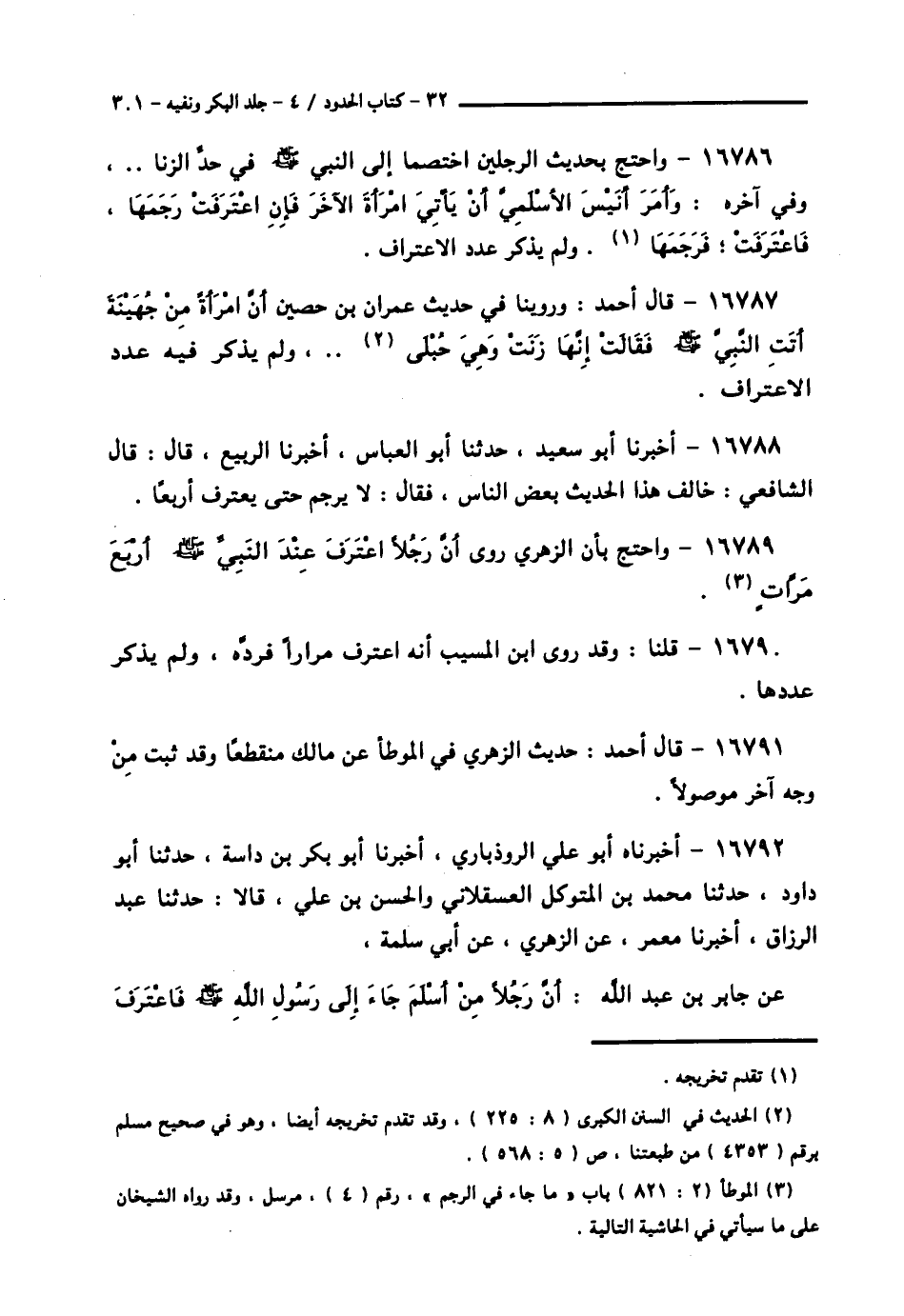 16792 - أَخْبَرَنَاهُ أَبُو عَلِيِّ الرُّوذْبَارِيُّ , أَخْبَرَنَا أَبُو بَكْرِ بْنُ دَاسَةَ , حَدَّثَنَا أَبُو دَاوُدَ , حَدَّثَنَا مُحَمَّدُ بْنُ الْمُتَوَكِّلِ الْعَسْقَلَانِيُّ , وَالْحَسَنُ بْنُ عَلِيٍّ , قَالَا: حَدَّثَنَا عَبْدُ الرَّزَّاقِ , أَخْبَرَنَا مَعْمَرٌ , عَنِ الزُّهْرِيِّ , عَنْ أَبِي سَلَمَةَ , عَنْ جَابِرِ بْنِ عَبْدِ اللَّهِ , أَنَّ رَجُلًا مِنَ أَسْلَمَ جَاءَ إِلَى رَسُولِ اللَّهِ صَلَّى اللهُ عَلَيْهِ وَسَلَّمَ فَاعْتَرَفَ -[302]- بِالزِّنَا , فَأَعْرَضَ عَنْهُ , ثُمَّ اعْتَرَفَ فَأَعْرَضَ عَنْهُ , ثُمَّ اعْتَرَفَ فَأَعْرَضَ عَنْهُ , حَتَّى شَهِدَ عَلَى نَفْسِهِ أَرْبَعَ شَهَادَاتٍ , فَقَالَ النَّبِيُّ صَلَّى اللهُ عَلَيْهِ وَسَلَّمَ: «§أَبِكَ جُنُونٌ؟» قَالَ: لَا , قَالَ: «أَحْصَنْتَ؟» قَالَ: نَعَمْ , قَالَ: فَأَمَرَ بِهِ النَّبِيُّ صَلَّى اللهُ عَلَيْهِ وَسَلَّمَ فَرُجِمَ حَتَّى مَاتَ , فَقَالَ لَهُ النَّبِيُّ صَلَّى اللهُ عَلَيْهِ وَسَلَّمَ «خَيْرًا» , وَلَمْ يُصَلِّ عَلَيْهِ "