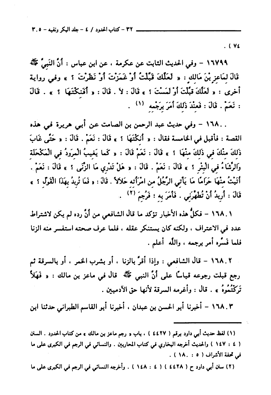 16803 - أَخْبَرَنَا أَبُو الْحَسَنِ بْنُ عَبْدَانَ , أَخْبَرَنَا أَبُو الْقَاسِمِ الطَّبَرَانِيُّ , حَدَّثَنَا ابْنُ -[306]- كَيْسَانَ , حَدَّثَنَا أَبُو حُذَيْفَةَ , حَدَّثَنَا سُفْيَانُ , عَنْ زَيْدِ بْنِ أَسْلَمَ , عَنْ يَزِيدَ بْنِ نُعَيْمِ بْنِ هَزَّالٍ الْأَسْلَمِيِّ , عَنْ أَبِيهِ , أَنَّ §رَسُولَ اللَّهِ صَلَّى اللهُ عَلَيْهِ وَسَلَّمَ قَالَ فِي مَاعِزٍ: " اذْهَبُوا بِهِ فَارْجُمُوهُ , فَلَمَّا مَسَّتْهُ الْحِجَارَةُ جَذِعَ فَاشْتَدَّ , فَرَمَاهُ عَبْدُ اللَّهِ بْنُ أُنَيْسٍ بِوَطِيفٍ , فَصَرَعَهُ , وَرَمَاهُ النَّاسُ حَتَّى قَتَلُوهُ , فَذُكِرَ لِلنَّبِيِّ صَلَّى اللهُ عَلَيْهِ وَسَلَّمَ فِرَارُهُ , فَقَالَ: «هَلَّا تَرَكْتُمُوهُ فَلَعَلَّهُ يَتُوبُ , فَيَتُوبُ اللَّهُ عَلَيْهِ» يَا هَزَّالُ لَوْ سَتَرْتَهُ بِثَوْبِكَ كَانَ خَيْرًا لَكَ مِمَّا صَنَعْتَ "